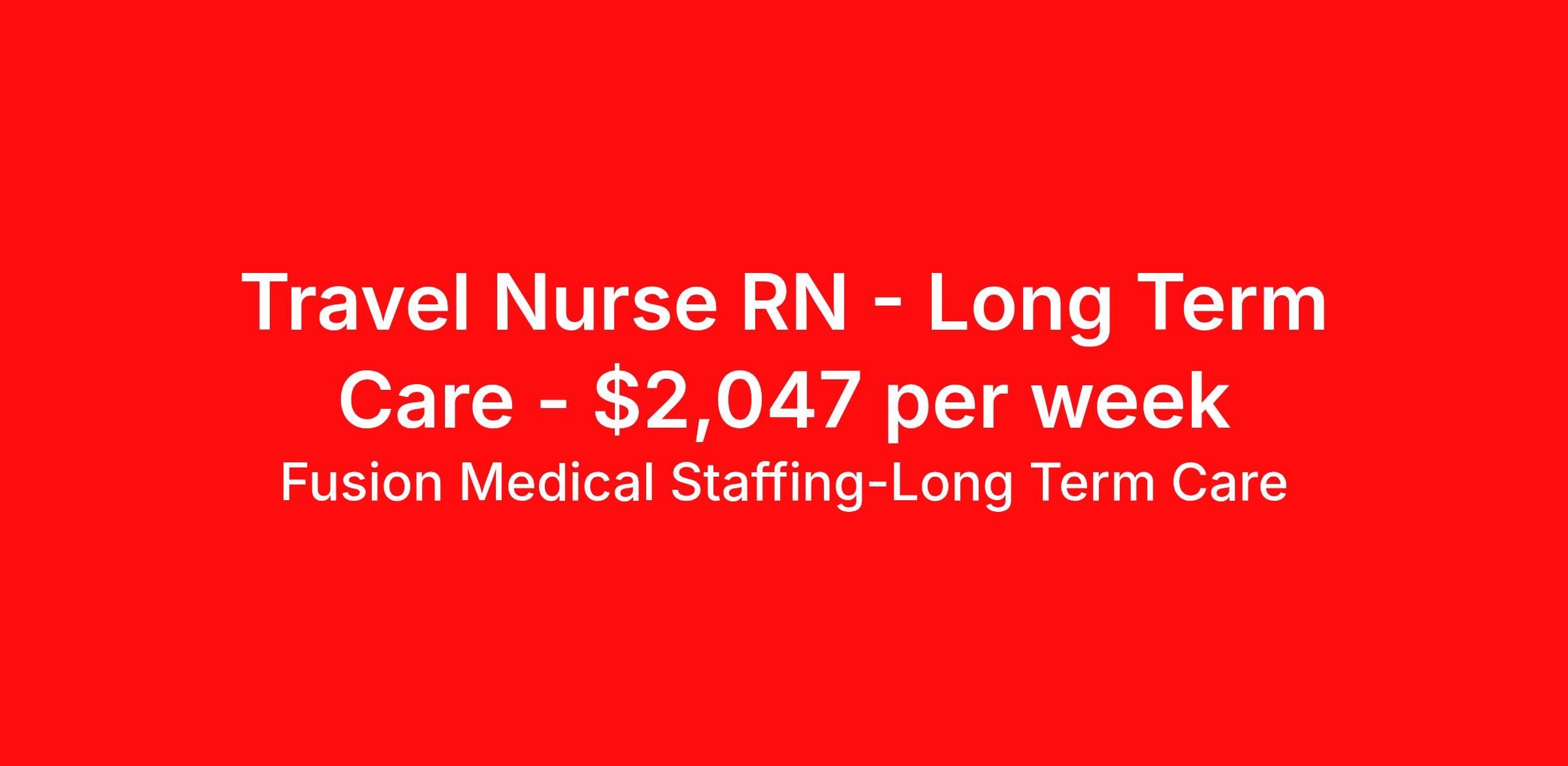 Fusion Medical Staffing-Long Term Care is seeking a travel nurse RN Long Term Care for a travel nursing job in Anchorage, Alaska. Job Description & Requirements Specialty: Long Term Care Discipline: RN Start Date: 03/30/2026 Duration: 13 weeks 36 hours per week Shift: 12 hours, days Employment Type: Travel Travel Long Term Care RN Company: Fusion Medical Staffing Location: Facility in Anchorage, Alaska Job Details Fusion Medical Staffing is seeking a skilled Long Term Care for a 13-week travel assignment in Anchorage, Alaska. As a member of our team, you'll have the opportunity to make a positive impact on the lives of patients while enjoying competitive pay, comprehensive benefits, and the support of a dedicated clinical team. Required Qualifications: One year of recent experience as an RN in a long-term care setting Valid RN license in compliance with state regulations Current BLS (AHA/ARC) or CPR certification Preferred Qualifications: ACLS Certification Other certifications may be required depending on facility requirements Summary: A Registered Nurse (RN) in a long-term care (LTC) facility provides skilled nursing care to residents, ensuring their health, comfort, and well-being. RNs oversee patient care plans, administer treatments, monitor for changes in condition, and collaborate with healthcare teams to provide high-quality, resident-centered care. They also play a key role in supervising nursing staff, educating residents and families, and ensuring compliance with healthcare regulations and facility policies. Essential Work Functions: Assess patient or resident health, monitor for changes, and take appropriate action to ensure their well-being Develop, update, and implement personalized care plans in collaboration with residents, families, and the patient care team Administer medications and treatments safely and accurately Observe residents for any medication reactions or changes in condition and report concerns to the healthcare provider Provide treatments including wound care, IV therapy, catheter management, and other skilled procedures within scope of practice Supervise and support LPNs and CNAs, delegating appropriately and ensuring residents receive quality care Educate residents and families on medications, treatments, and managing chronic conditions Document care provided, resident progress, and any health changes in a timely manner Respond quickly to emergencies, delivering critical care and coordinating with medical teams when needed Work closely with physicians, therapists, and other healthcare professionals to ensure coordinated, comprehensive care Perform other duties as assigned within the scope of practice Adhere to facility safety protocols, infection control guidelines, and regulatory standards Required Essential Skills: Critical thinking, service excellence, and good interpersonal communication skills The ability to read, write, and communicate in the English language Ability to read/comprehend written instructions, follow verbal instructions, and proficiency in PC skills Physical Abilities - Must be able to remain in a stationary position, move about, move equipment (50-100lbs), push, pull, and bend Interpersonal Skills - Must be able to work effectively with a variety of personnel (professional and ancillary) to present a positive attitude and professionalism Technical/Motor Skills - Must have the ability to grasp, perform fine manipulation, push/pull, and move about when assisting with procedures and/or using department equipment Mental Requirements - Must be able to cope with frequent contact with the general public and customers while meeting deadlines under pressure. Must be able to work under close supervision occasionally, as well as working without assistance from other personnel. Must be able to contend with irregular activity schedules occasionally and continuous concentration to detail Sensory - Must possess visual acuity and ability to effectively communicate Benefits Include: Highly competitive pay for travel professionals Comprehensive medical, dental, and vision insurance with first day coverage Paid Time Off (PTO) after 1560 hours Life and Short-term disability offered 401(k) matching Aggressive Refer-a-friend Bonus Program 24/7 recruiter support Reimbursement for licensure and CEUs Why Choose Fusion? At Fusion Medical Staffing, our goal is to improve the lives of everyone we touch, and we're always looking for people like you to join our mission. Your passion for helping others deserves a partner just as committed to supporting you — that’s why we offer day one insurance, $0 copay for mental health services, scholarships and awards, exclusive discounts, and more. From your personal recruiter to our clinical and traveler experience teams, we’re here to guide and celebrate you along your journey. You take care of others; we take care of you. Other Duties Disclaimer: To perform this job successfully, an individual must be able to perform each essential duty satisfactorily. The requirements listed are representative of the knowledge, skill, and/or ability required. Reasonable accommodations may be made to enable individuals with disabilities to perform the essential functions. Other duties may be assigned. This job description is not a comprehensive list of all activities, duties, or responsibilities that are required of the employee for this job and is subject to change at any time with or without notice. Start your rewarding career as a Travel LTC RN with Fusion Medical Staffing and join our mission to improve lives. Apply now! *Fusion is an EOE/E-Verify Employer Fusion Medical Staffing-Long Term Care Job ID 1849486. Pay package is based on 12 hour shifts and 36 hours per week (subject to confirmation) with tax-free stipend amount to be determined. About Fusion Medical Staffing-Long Term Care With a mission to improve the lives of everyone we touch, Fusion Medical Staffing connects healthcare travelers to opportunities in the locations t
