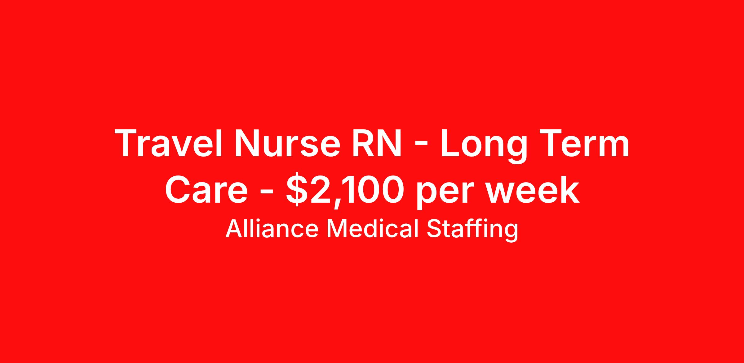 Alliance Medical Staffing is seeking a travel nurse RN Long Term Care for a travel nursing job in Boise, Idaho. Job Description & Requirements Specialty: Long Term Care Discipline: RN Start Date: 03/23/2026 Duration: 13 weeks 36 hours per week Shift: 12 hours, days Employment Type: Travel Alliance Medical Staffing Job ID 1603. Pay package is based on 12 hour shifts and 36 hours per week (subject to confirmation) with tax-free stipend amount to be determined. About Alliance Medical Staffing ALLIANCE was founded in 2004, and we are a full service medical staffing agency, with divisions serving Nursing, Rehab and Allied Health. Despite our rapid growth we've still maintained our personal touch. It's who we are and something we're proud of. Many of our staff have 10 years of experience in this industry. Relationship centered, genuinely caring, and always available are good descriptors of everyone you'll work with here at ALLiANCE.