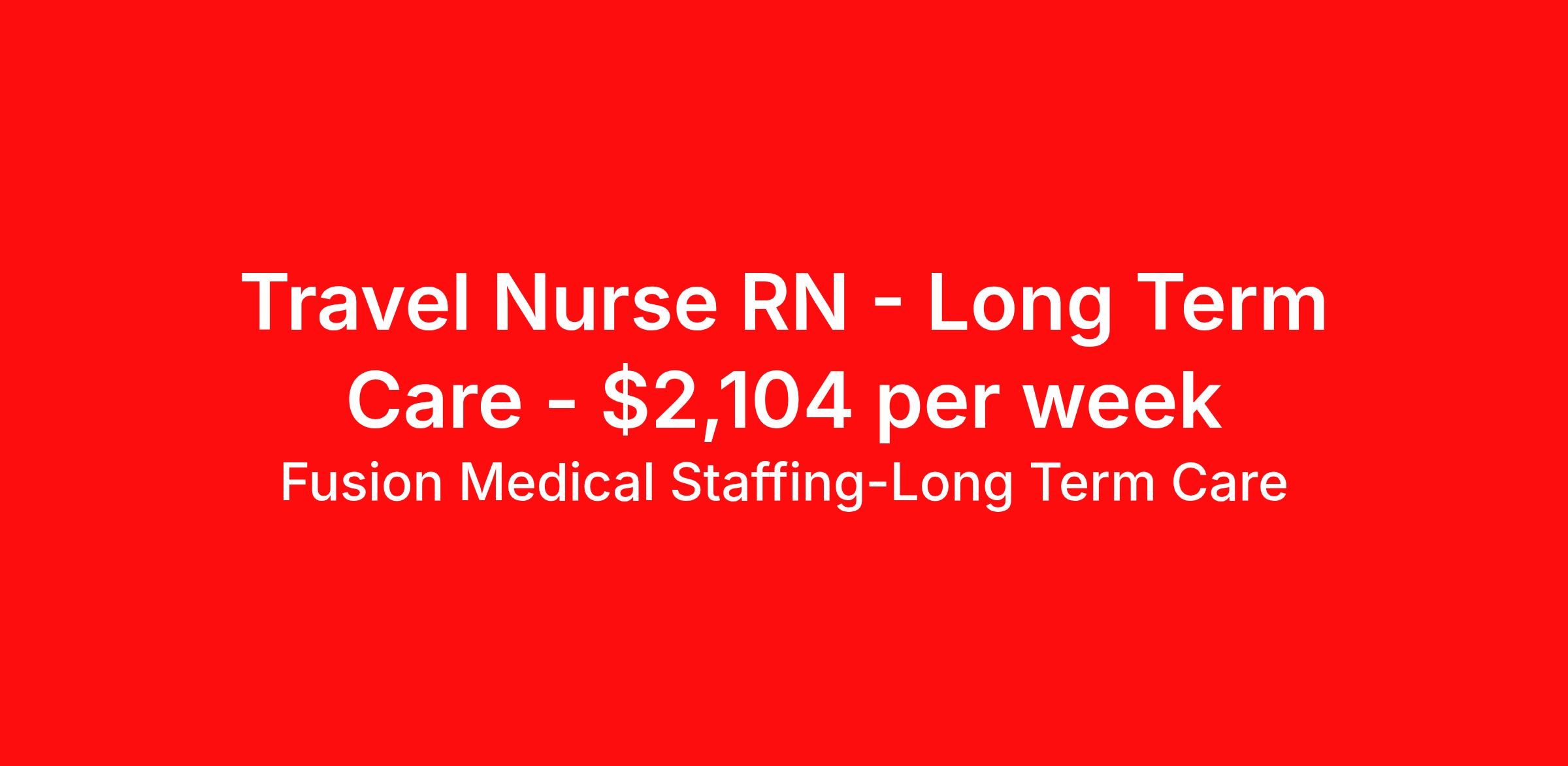 Fusion Medical Staffing-Long Term Care is seeking a travel nurse RN Long Term Care for a travel nursing job in Elgin, Illinois. Job Description & Requirements Specialty: Long Term Care Discipline: RN Start Date: 03/30/2026 Duration: 16 weeks 40 hours per week Shift: 8 hours, nights Employment Type: Travel Travel Long Term Care RN Company: Fusion Medical Staffing Location: Facility in Elgin, Illinois Job Details Fusion Medical Staffing is seeking a skilled Long Term Care for a 16-week travel assignment in Elgin, Illinois. As a member of our team, you'll have the opportunity to make a positive impact on the lives of patients while enjoying competitive pay, comprehensive benefits, and the support of a dedicated clinical team. Required Qualifications: One year of recent experience as an RN in a long-term care setting Valid RN license in compliance with state regulations Current BLS (AHA/ARC) or CPR certification Preferred Qualifications: ACLS Certification Other certifications may be required depending on facility requirements Summary: A Registered Nurse (RN) in a long-term care (LTC) facility provides skilled nursing care to residents, ensuring their health, comfort, and well-being. RNs oversee patient care plans, administer treatments, monitor for changes in condition, and collaborate with healthcare teams to provide high-quality, resident-centered care. They also play a key role in supervising nursing staff, educating residents and families, and ensuring compliance with healthcare regulations and facility policies. Essential Work Functions: Assess patient or resident health, monitor for changes, and take appropriate action to ensure their well-being Develop, update, and implement personalized care plans in collaboration with residents, families, and the patient care team Administer medications and treatments safely and accurately Observe residents for any medication reactions or changes in condition and report concerns to the healthcare provider Provide treatments including wound care, IV therapy, catheter management, and other skilled procedures within scope of practice Supervise and support LPNs and CNAs, delegating appropriately and ensuring residents receive quality care Educate residents and families on medications, treatments, and managing chronic conditions Document care provided, resident progress, and any health changes in a timely manner Respond quickly to emergencies, delivering critical care and coordinating with medical teams when needed Work closely with physicians, therapists, and other healthcare professionals to ensure coordinated, comprehensive care Perform other duties as assigned within the scope of practice Adhere to facility safety protocols, infection control guidelines, and regulatory standards Required Essential Skills: Critical thinking, service excellence, and good interpersonal communication skills The ability to read, write, and communicate in the English language Ability to read/comprehend written instructions, follow verbal instructions, and proficiency in PC skills Physical Abilities - Must be able to remain in a stationary position, move about, move equipment (50-100lbs), push, pull, and bend Interpersonal Skills - Must be able to work effectively with a variety of personnel (professional and ancillary) to present a positive attitude and professionalism Technical/Motor Skills - Must have the ability to grasp, perform fine manipulation, push/pull, and move about when assisting with procedures and/or using department equipment Mental Requirements - Must be able to cope with frequent contact with the general public and customers while meeting deadlines under pressure. Must be able to work under close supervision occasionally, as well as working without assistance from other personnel. Must be able to contend with irregular activity schedules occasionally and continuous concentration to detail Sensory - Must possess visual acuity and ability to effectively communicate Benefits Include: Highly competitive pay for travel professionals Comprehensive medical, dental, and vision insurance with first day coverage Paid Time Off (PTO) after 1560 hours Life and Short-term disability offered 401(k) matching Aggressive Refer-a-friend Bonus Program 24/7 recruiter support Reimbursement for licensure and CEUs Why Choose Fusion? At Fusion Medical Staffing, our goal is to improve the lives of everyone we touch, and we're always looking for people like you to join our mission. Your passion for helping others deserves a partner just as committed to supporting you — that’s why we offer day one insurance, $0 copay for mental health services, scholarships and awards, exclusive discounts, and more. From your personal recruiter to our clinical and traveler experience teams, we’re here to guide and celebrate you along your journey. You take care of others; we take care of you. Other Duties Disclaimer: To perform this job successfully, an individual must be able to perform each essential duty satisfactorily. The requirements listed are representative of the knowledge, skill, and/or ability required. Reasonable accommodations may be made to enable individuals with disabilities to perform the essential functions. Other duties may be assigned. This job description is not a comprehensive list of all activities, duties, or responsibilities that are required of the employee for this job and is subject to change at any time with or without notice. Start your rewarding career as a Travel LTC RN with Fusion Medical Staffing and join our mission to improve lives. Apply now! *Fusion is an EOE/E-Verify Employer Fusion Medical Staffing-Long Term Care Job ID 1873869. Pay package is based on 8 hour shifts and 40 hours per week (subject to confirmation) with tax-free stipend amount to be determined. About Fusion Medical Staffing-Long Term Care With a mission to improve the lives of everyone we touch, Fusion Medical Staffing connects healthcare travelers to opportunities in the locations they've