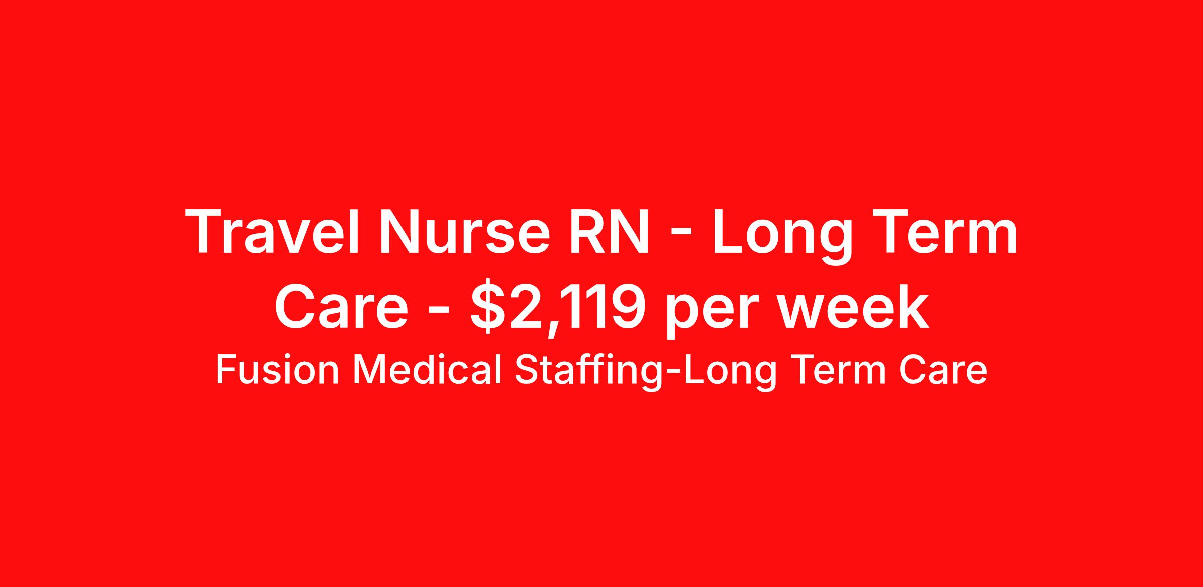 Fusion Medical Staffing-Long Term Care is seeking a travel nurse RN Long Term Care for a travel nursing job in Carroll, Iowa. Job Description & Requirements Specialty: Long Term Care Discipline: RN Start Date: ASAP Duration: 13 weeks 40 hours per week Shift: 8 hours, evenings Employment Type: Travel Travel Long Term Care RN Company: Fusion Medical Staffing Location: Facility in Carroll, Iowa Job Details Fusion Medical Staffing is seeking a skilled Long Term Care for a 13-week travel assignment in Carroll, Iowa. As a member of our team, you'll have the opportunity to make a positive impact on the lives of patients while enjoying competitive pay, comprehensive benefits, and the support of a dedicated clinical team. Required Qualifications: One year of recent experience as an RN in a long-term care setting Valid RN license in compliance with state regulations Current BLS (AHA/ARC) or CPR certification Preferred Qualifications: ACLS Certification Other certifications may be required depending on facility requirements Summary: A Registered Nurse (RN) in a long-term care (LTC) facility provides skilled nursing care to residents, ensuring their health, comfort, and well-being. RNs oversee patient care plans, administer treatments, monitor for changes in condition, and collaborate with healthcare teams to provide high-quality, resident-centered care. They also play a key role in supervising nursing staff, educating residents and families, and ensuring compliance with healthcare regulations and facility policies. Essential Work Functions: Assess patient or resident health, monitor for changes, and take appropriate action to ensure their well-being Develop, update, and implement personalized care plans in collaboration with residents, families, and the patient care team Administer medications and treatments safely and accurately Observe residents for any medication reactions or changes in condition and report concerns to the healthcare provider Provide treatments including wound care, IV therapy, catheter management, and other skilled procedures within scope of practice Supervise and support LPNs and CNAs, delegating appropriately and ensuring residents receive quality care Educate residents and families on medications, treatments, and managing chronic conditions Document care provided, resident progress, and any health changes in a timely manner Respond quickly to emergencies, delivering critical care and coordinating with medical teams when needed Work closely with physicians, therapists, and other healthcare professionals to ensure coordinated, comprehensive care Perform other duties as assigned within the scope of practice Adhere to facility safety protocols, infection control guidelines, and regulatory standards Required Essential Skills: Critical thinking, service excellence, and good interpersonal communication skills The ability to read, write, and communicate in the English language Ability to read/comprehend written instructions, follow verbal instructions, and proficiency in PC skills Physical Abilities - Must be able to remain in a stationary position, move about, move equipment (50-100lbs), push, pull, and bend Interpersonal Skills - Must be able to work effectively with a variety of personnel (professional and ancillary) to present a positive attitude and professionalism Technical/Motor Skills - Must have the ability to grasp, perform fine manipulation, push/pull, and move about when assisting with procedures and/or using department equipment Mental Requirements - Must be able to cope with frequent contact with the general public and customers while meeting deadlines under pressure. Must be able to work under close supervision occasionally, as well as working without assistance from other personnel. Must be able to contend with irregular activity schedules occasionally and continuous concentration to detail Sensory - Must possess visual acuity and ability to effectively communicate Benefits Include: Highly competitive pay for travel professionals Comprehensive medical, dental, and vision insurance with first day coverage Paid Time Off (PTO) after 1560 hours Life and Short-term disability offered 401(k) matching Aggressive Refer-a-friend Bonus Program 24/7 recruiter support Reimbursement for licensure and CEUs Why Choose Fusion? At Fusion Medical Staffing, our goal is to improve the lives of everyone we touch, and we're always looking for people like you to join our mission. Your passion for helping others deserves a partner just as committed to supporting you — that’s why we offer day one insurance, $0 copay for mental health services, scholarships and awards, exclusive discounts, and more. From your personal recruiter to our clinical and traveler experience teams, we’re here to guide and celebrate you along your journey. You take care of others; we take care of you. Other Duties Disclaimer: To perform this job successfully, an individual must be able to perform each essential duty satisfactorily. The requirements listed are representative of the knowledge, skill, and/or ability required. Reasonable accommodations may be made to enable individuals with disabilities to perform the essential functions. Other duties may be assigned. This job description is not a comprehensive list of all activities, duties, or responsibilities that are required of the employee for this job and is subject to change at any time with or without notice. Start your rewarding career as a Travel LTC RN with Fusion Medical Staffing and join our mission to improve lives. Apply now! *Fusion is an EOE/E-Verify Employer Fusion Medical Staffing-Long Term Care Job ID 1871338. Pay package is based on 8 hour shifts and 40 hours per week (subject to confirmation) with tax-free stipend amount to be determined. About Fusion Medical Staffing-Long Term Care With a mission to improve the lives of everyone we touch, Fusion Medical Staffing connects healthcare travelers to opportunities in the locations they've always dr