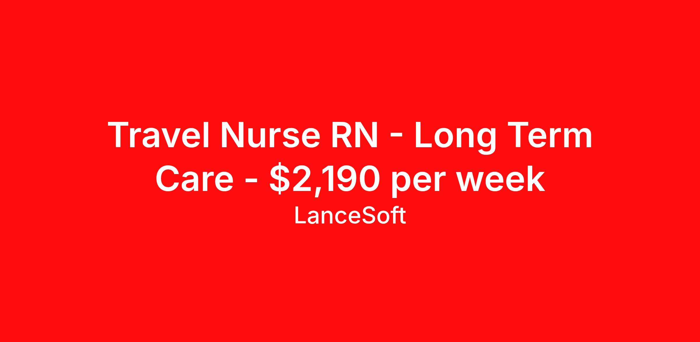 Travel Nurse RN - Long Term Care - $2,190 per week