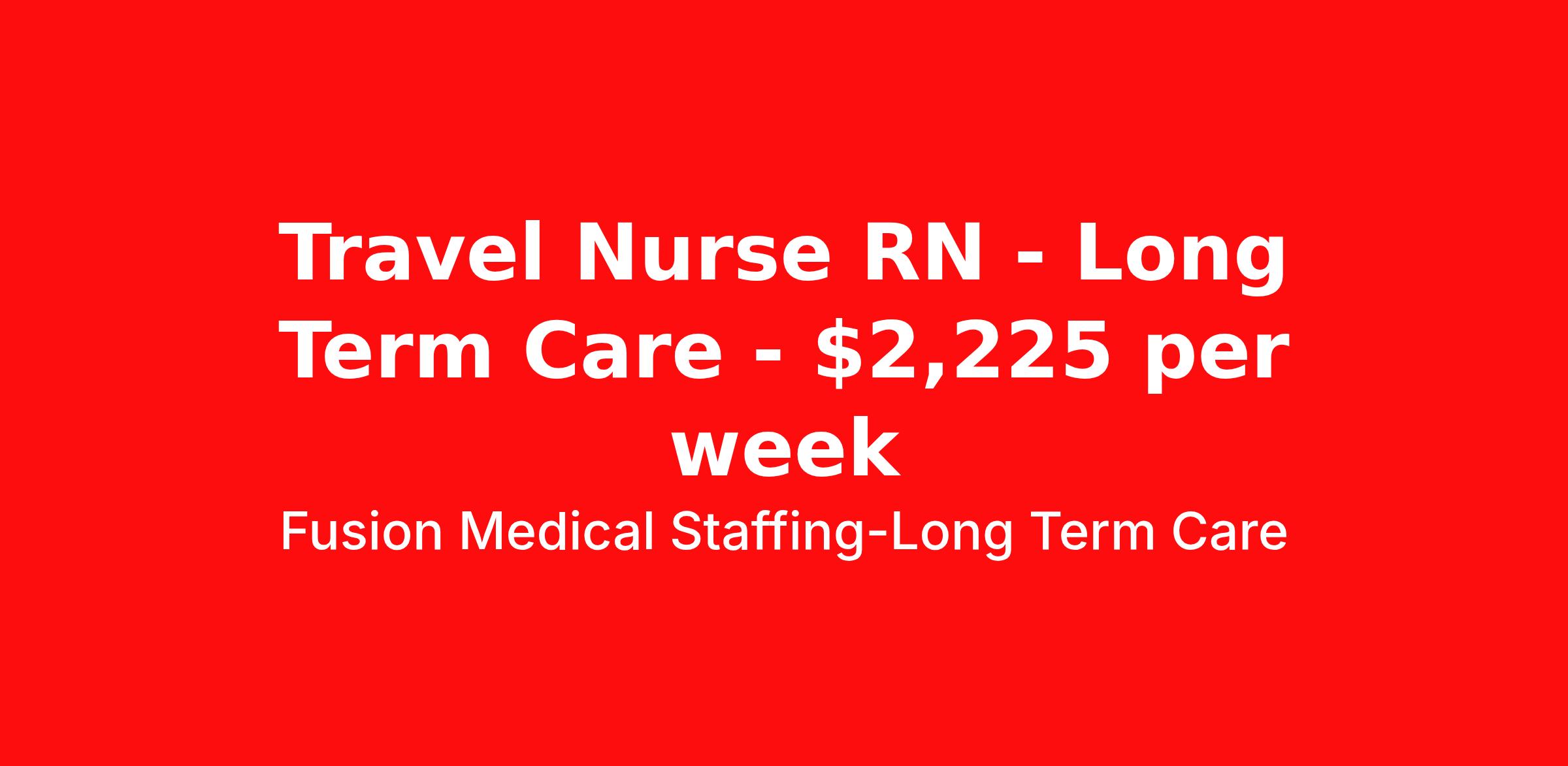 Fusion Medical Staffing-Long Term Care is seeking a travel nurse RN Long Term Care for a travel nursing job in Hallock, Minnesota. Job Description & Requirements Specialty: Long Term Care Discipline: RN Start Date: 04/13/2026 Duration: 14 weeks 40 hours per week Shift: 8 hours, nights Employment Type: Travel Travel Long Term Care RN Company: Fusion Medical Staffing Location: Facility in Hallock, Minnesota Job Details Fusion Medical Staffing is seeking a skilled Long Term Care for a 14-week travel assignment in Hallock, Minnesota. As a member of our team, you'll have the opportunity to make a positive impact on the lives of patients while enjoying competitive pay, comprehensive benefits, and the support of a dedicated clinical team. Required Qualifications: One year of recent experience as an RN in a long-term care setting Valid RN license in compliance with state regulations Current BLS (AHA/ARC) or CPR certification Preferred Qualifications: ACLS Certification Other certifications may be required depending on facility requirements Summary: A Registered Nurse (RN) in a long-term care (LTC) facility provides skilled nursing care to residents, ensuring their health, comfort, and well-being. RNs oversee patient care plans, administer treatments, monitor for changes in condition, and collaborate with healthcare teams to provide high-quality, resident-centered care. They also play a key role in supervising nursing staff, educating residents and families, and ensuring compliance with healthcare regulations and facility policies. Essential Work Functions: Assess patient or resident health, monitor for changes, and take appropriate action to ensure their well-being Develop, update, and implement personalized care plans in collaboration with residents, families, and the patient care team Administer medications and treatments safely and accurately Observe residents for any medication reactions or changes in condition and report concerns to the healthcare provider Provide treatments including wound care, IV therapy, catheter management, and other skilled procedures within scope of practice Supervise and support LPNs and CNAs, delegating appropriately and ensuring residents receive quality care Educate residents and families on medications, treatments, and managing chronic conditions Document care provided, resident progress, and any health changes in a timely manner Respond quickly to emergencies, delivering critical care and coordinating with medical teams when needed Work closely with physicians, therapists, and other healthcare professionals to ensure coordinated, comprehensive care Perform other duties as assigned within the scope of practice Adhere to facility safety protocols, infection control guidelines, and regulatory standards Required Essential Skills: Critical thinking, service excellence, and good interpersonal communication skills The ability to read, write, and communicate in the English language Ability to read/comprehend written instructions, follow verbal instructions, and proficiency in PC skills Physical Abilities - Must be able to remain in a stationary position, move about, move equipment (50-100lbs), push, pull, and bend Interpersonal Skills - Must be able to work effectively with a variety of personnel (professional and ancillary) to present a positive attitude and professionalism Technical/Motor Skills - Must have the ability to grasp, perform fine manipulation, push/pull, and move about when assisting with procedures and/or using department equipment Mental Requirements - Must be able to cope with frequent contact with the general public and customers while meeting deadlines under pressure. Must be able to work under close supervision occasionally, as well as working without assistance from other personnel. Must be able to contend with irregular activity schedules occasionally and continuous concentration to detail Sensory - Must possess visual acuity and ability to effectively communicate Benefits Include: Highly competitive pay for travel professionals Comprehensive medical, dental, and vision insurance with first day coverage Paid Time Off (PTO) after 1560 hours Life and Short-term disability offered 401(k) matching Aggressive Refer-a-friend Bonus Program 24/7 recruiter support Reimbursement for licensure and CEUs Why Choose Fusion? At Fusion Medical Staffing, our goal is to improve the lives of everyone we touch, and we're always looking for people like you to join our mission. Your passion for helping others deserves a partner just as committed to supporting you — that’s why we offer day one insurance, $0 copay for mental health services, scholarships and awards, exclusive discounts, and more. From your personal recruiter to our clinical and traveler experience teams, we’re here to guide and celebrate you along your journey. You take care of others; we take care of you. Other Duties Disclaimer: To perform this job successfully, an individual must be able to perform each essential duty satisfactorily. The requirements listed are representative of the knowledge, skill, and/or ability required. Reasonable accommodations may be made to enable individuals with disabilities to perform the essential functions. Other duties may be assigned. This job description is not a comprehensive list of all activities, duties, or responsibilities that are required of the employee for this job and is subject to change at any time with or without notice. Start your rewarding career as a Travel LTC RN with Fusion Medical Staffing and join our mission to improve lives. Apply now! *Fusion is an EOE/E-Verify Employer Fusion Medical Staffing-Long Term Care Job ID 1852261. Pay package is based on 8 hour shifts and 40 hours per week (subject to confirmation) with tax-free stipend amount to be determined. About Fusion Medical Staffing-Long Term Care With a mission to improve the lives of everyone we touch, Fusion Medical Staffing connects healthcare travelers to opportunities in the location