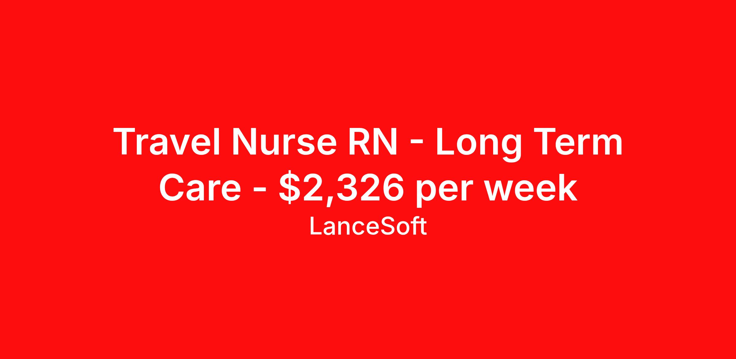 Travel Nurse RN - Long Term Care - $2,326 per week