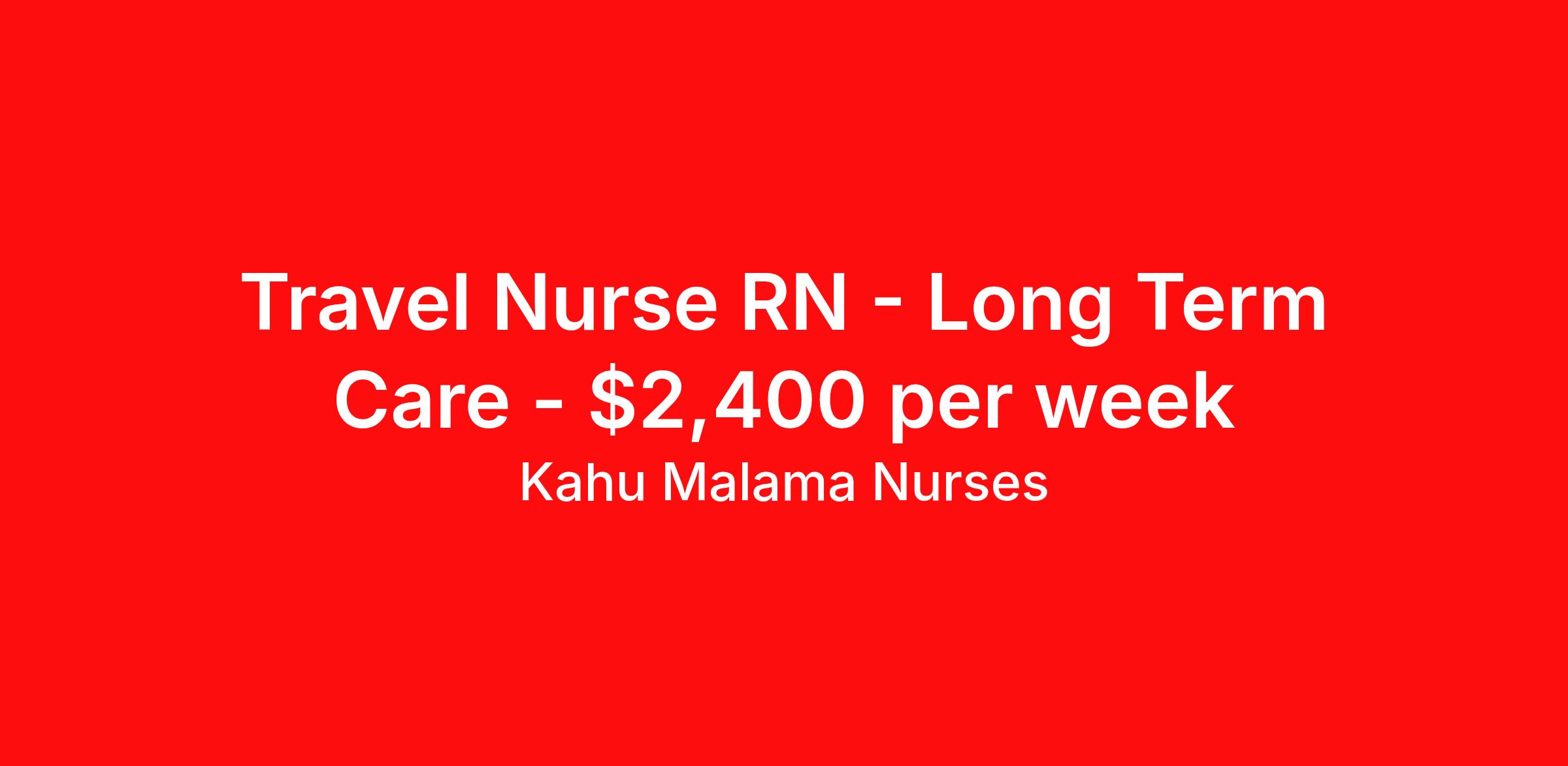 Kahu Malama Nurses is seeking a travel nurse RN Long Term Care for a travel nursing job in Waimea, Hawaii. Job Description & Requirements Specialty: Long Term Care Discipline: RN Start Date: ASAP Duration: 13 weeks 40 hours per week Shift: 8 hours, days Employment Type: Travel CNA for a long term care facility in Waimea Kahu Malama Nurses Job ID 270. Pay package is based on 8 hour shifts and 40 hours per week (subject to confirmation) with tax-free stipend amount to be determined. About Kahu Malama Nurses Kahu Malama Nurses has been serving the Hawaiian Islands since 1982 by providing temporary, temporary-to-hire, direct hire, private duty care, travel nursing and payroll services. Their mission is to exceed standards of care across the state and beyond by joining medical professionals with leading hospitals, long term care centers and other high-quality clients. Kahu Malama Nurses is part of the Array Corporation, the leading technology-enabled enterprise staffing company working to modernize the staffing industry by fixing how labor is bought, sold and delivered.
