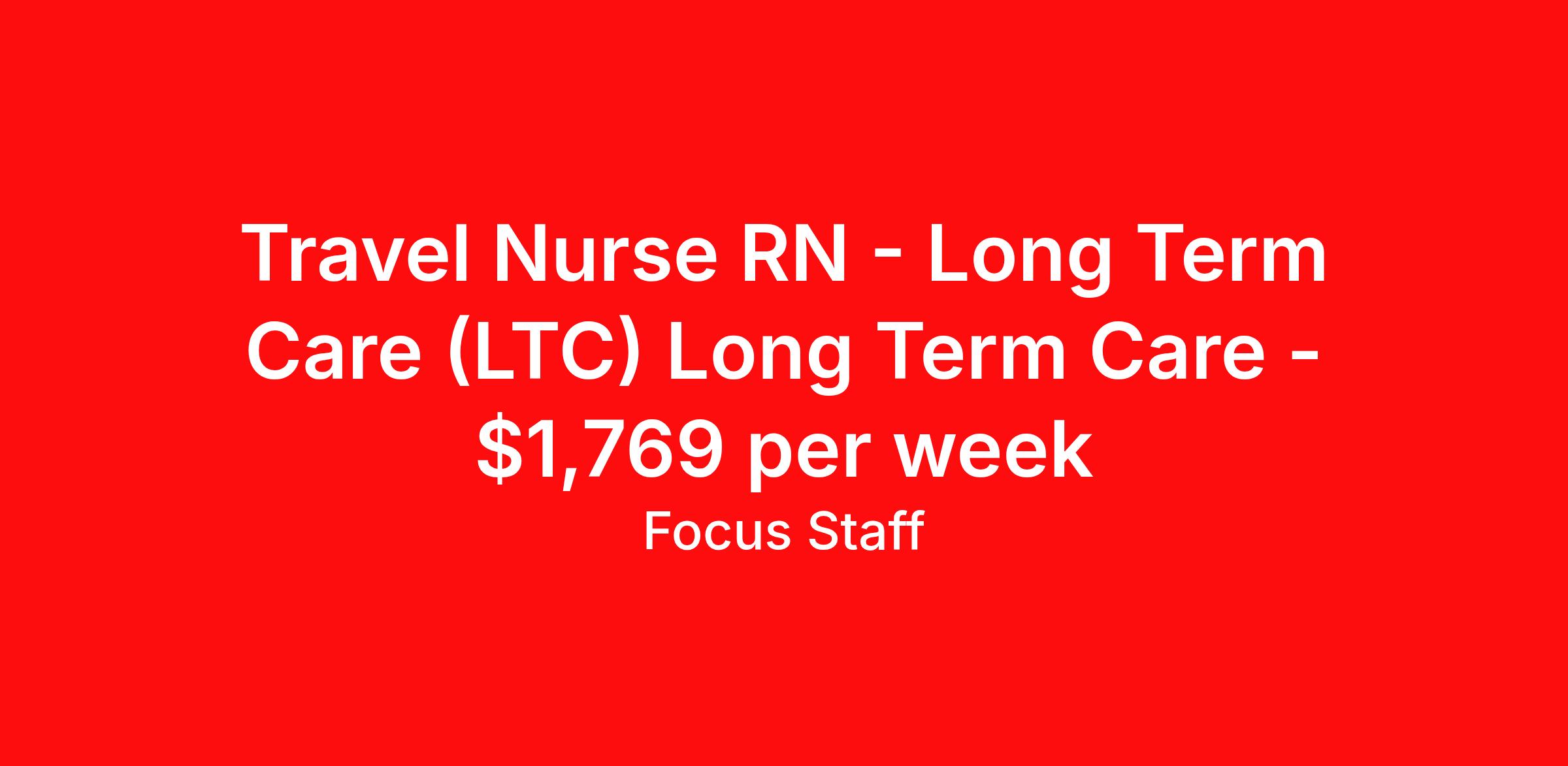 Travel Nurse RN - Long Term Care (LTC) Long Term Care - $1,769 per week