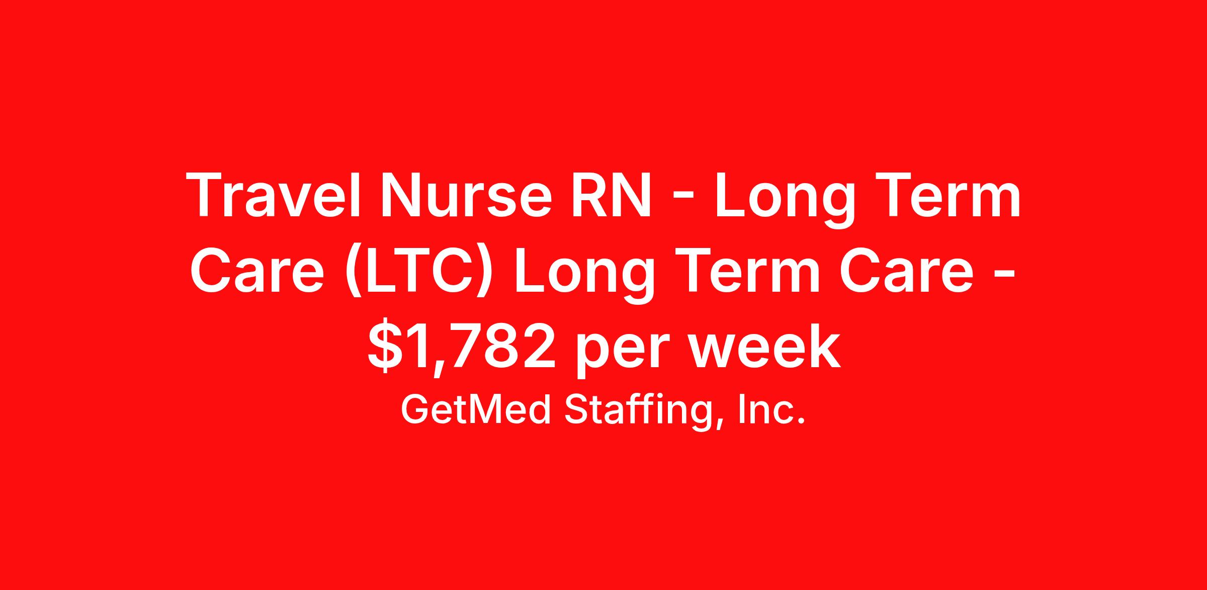 GetMed Staffing, Inc. is seeking a travel nurse RN Long Term Care (LTC) Long Term Care for a travel nursing job in Hartley, Iowa. Job Description & Requirements Specialty: Long Term Care Discipline: RN Start Date: 03/30/2026 Duration: 13 weeks 36 hours per week Shift: 12 hours, days Employment Type: Travel GetMed Staffing is searching for a strong Long Term Care RN to assist our traveler-friendly client. A minimum of 1-2 years of experience is required. Traveling with GetMed Staffing offers the unique opportunity to gain diverse experiences, both personally and professionally. Gain experience that matters. GetMed Staffing, Inc. Job ID 35910633. Pay package is based on 12 hour shifts and 36.0 hours per week (subject to confirmation) with tax-free stipend amount to be determined. Posted job title: RN:LTC,07:00:00-19:00:00 About GetMed Staffing, Inc. We are a diversity owned company, specializing in healthcare recruiting services. We truly understand how important a healthcare travelers' relationship is with their recruiter, as well as our relationship is with our healthcare facilities. We recognize that the needs of our healthcare travelers can vary, and therefore we provide the personalized touch necessary to ensure a successful travel assignment each and every time. Our healthcare facilities and clients benefit from us putting our healthcare travelers first. GetMed Staffing is excited to be a leader within the industry by focusing on providing healthcare travelers with more choices and possibilities as they plan for their next healthcare travel assignment. Benefits Life insurance Medical benefits Dental benefits Vision benefits 401k retirement plan