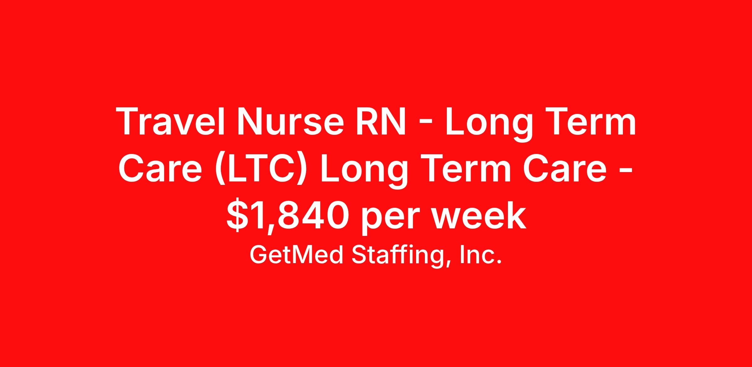 GetMed Staffing, Inc. is seeking a travel nurse RN Long Term Care (LTC) Long Term Care for a travel nursing job in Holdrege, Nebraska. Job Description & Requirements Specialty: Long Term Care Discipline: RN Start Date: 03/30/2026 Duration: 13 weeks 40 hours per week Shift: 8 hours, days Employment Type: Travel GetMed Staffing is searching for a strong Long Term Care RN to assist our traveler-friendly client. A minimum of 1-2 years of experience is required. Traveling with GetMed Staffing offers the unique opportunity to gain diverse experiences, both personally and professionally. Gain experience that matters. GetMed Staffing, Inc. Job ID 36173532. Pay package is based on 8 hour shifts and 40.0 hours per week (subject to confirmation) with tax-free stipend amount to be determined. Posted job title: RN:LTC,07:00:00-15:00:00 About GetMed Staffing, Inc. We are a diversity owned company, specializing in healthcare recruiting services. We truly understand how important a healthcare travelers' relationship is with their recruiter, as well as our relationship is with our healthcare facilities. We recognize that the needs of our healthcare travelers can vary, and therefore we provide the personalized touch necessary to ensure a successful travel assignment each and every time. Our healthcare facilities and clients benefit from us putting our healthcare travelers first. GetMed Staffing is excited to be a leader within the industry by focusing on providing healthcare travelers with more choices and possibilities as they plan for their next healthcare travel assignment. Benefits Life insurance Medical benefits Dental benefits Vision benefits 401k retirement plan