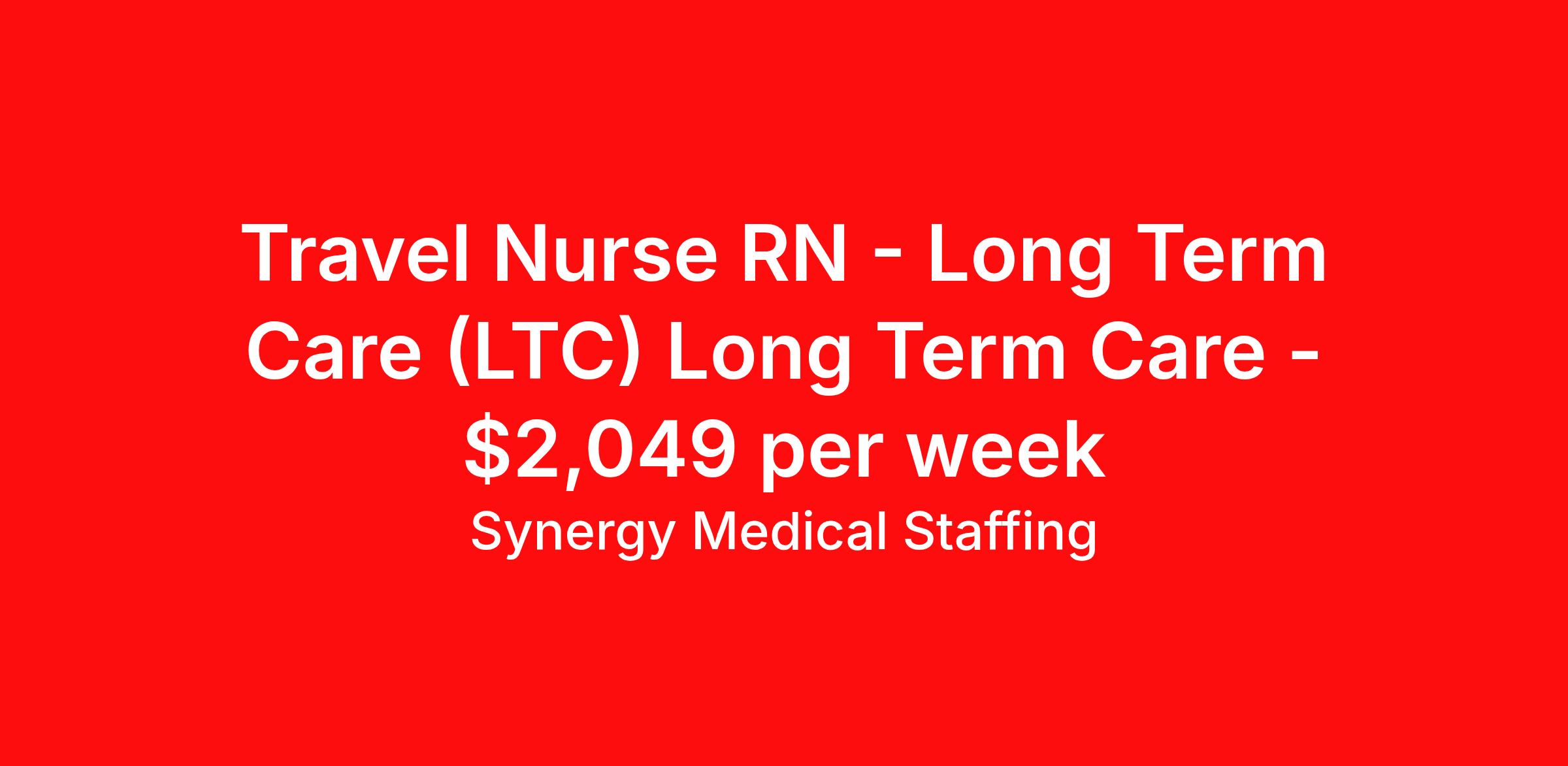 Synergy Medical Staffing is seeking a travel nurse RN Long Term Care (LTC) Long Term Care for a travel nursing job in Westbrook, Maine. Job Description & Requirements Specialty: Long Term Care Discipline: RN Start Date: 03/23/2026 Duration: 13 weeks 40 hours per week Shift: 8 hours, days Employment Type: Travel Travel, RN - LTC Location: Westbrook, Maine Shift: 5x8 Days, 08:00:00-16:00:00, 8.00-5 Duration 13 Weeks When you join Synergy Medical Staffing, you’ll have a dedicated recruiter helping you at all times. Your recruiter is a cross between a career coach and a concierge. They will help you fine-tune your resume, find your next job, and locate an apartment (even one that takes pets!). Make one call and get help with everything from placement to housing to payroll, even travel directions! As a travel, contract and permanent placement medical staffing company with over 20 years of experience in the industry, we understand your needs. Synergy’s Benefits are best in class and include the following: 401K that matches up to 5% of your pay and you are 100% vested from Day 1. Medical, Dental, Vision, Life insurance, Long and short-term disability and others Loyality Program Weekly pay Holiday Pay (varies by Assignment) Guaranteed Hours (varies by Assignment) Referral bonus Continuing Education License and certification reimbursement Synergy Medical Staffing Job ID 36188836. Pay package is based on 8 hour shifts and 40.0 hours per week (subject to confirmation) with tax-free stipend amount to be determined. Posted job title: RN:LTC,08:00:00-16:00:00 About Synergy Medical Staffing When you join Synergy Medical Staffing, you’ll have a dedicated recruiter helping you at all times. Your recruiter is a cross between a career coach and a concierge. They will help you fine-tune your resume, find your next job, and locate an apartment (even one that takes pets!). Make one call and get help with everything from placement to housing to payroll, even travel directions! As a travel, contract and permanent placement medical staffing company with over 12 years of experience in the industry, we understand your needs. Are you interested in traveling, or just a job around the corner? Whatever your preference, you can be sure there are plenty of Nursing Jobs, Allied Jobs and Physical Therapy Jobs, Occupational Therapy Jobs, Speech Therapy Jobs and Rehab Therapy jobs anywhere you want to go. Synergy Medical Staffing professionals have been in the Medical staffing employment and staffing industry for over 12 years, and have developed solid relationships with numerous healthcare facilities nationwide. Contact us now and expand your medical career with new opportunities from Synergy Medical Staffing. Synergy’s Benefits are best in class and include the following 401K Day 1 Full Medical, Dental, Vision, Life insurance, Long and short term disability and others Student Loan Repayment and CEU reimbursement Loyalty bonus after 600 hours Benefits Discount program Weekly pay Holiday Pay Guaranteed Hours Referral bonus Medical benefits Dental benefits Continuing Education License and certification reimbursement Life insurance 401k retirement plan Cancelation protection Vision benefits