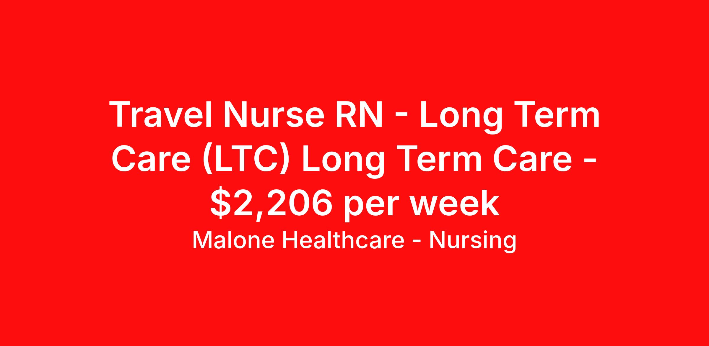 Malone Healthcare - Nursing is seeking a travel nurse RN Long Term Care (LTC) Long Term Care for a travel nursing job in Barton, Vermont. Job Description & Requirements Specialty: Long Term Care Discipline: RN Start Date: 04/27/2026 Duration: 13 weeks 40 hours per week Shift: 8 hours, evenings Employment Type: Travel Shift: 8 hour Eves; 2p-10:30p / Thursday - Monday. Guarantee: 40 hours. Contract Length: 13 weeks. OT available. About Malone Healthcare - Nursing With a commitment to providing a higher standard of service and experience in patient care, Malone Healthcare places expert nurses and allied health professionals in rewarding careers throughout the United States. As a leading healthcare staffing agency, Malone’s focus on compliance and integrity translates to a seamless experience for our team members and partner facilities. When you work with Malone Healthcare, you can rely on over 50 years of proven experience placing exceptional professionals in quality healthcare settings. Benefits Weekly pay Holiday Pay Guaranteed Hours Continuing Education 401k retirement plan Pet insurance Referral bonus Medical benefits Dental benefits Vision benefits License and certification reimbursement Life insurance