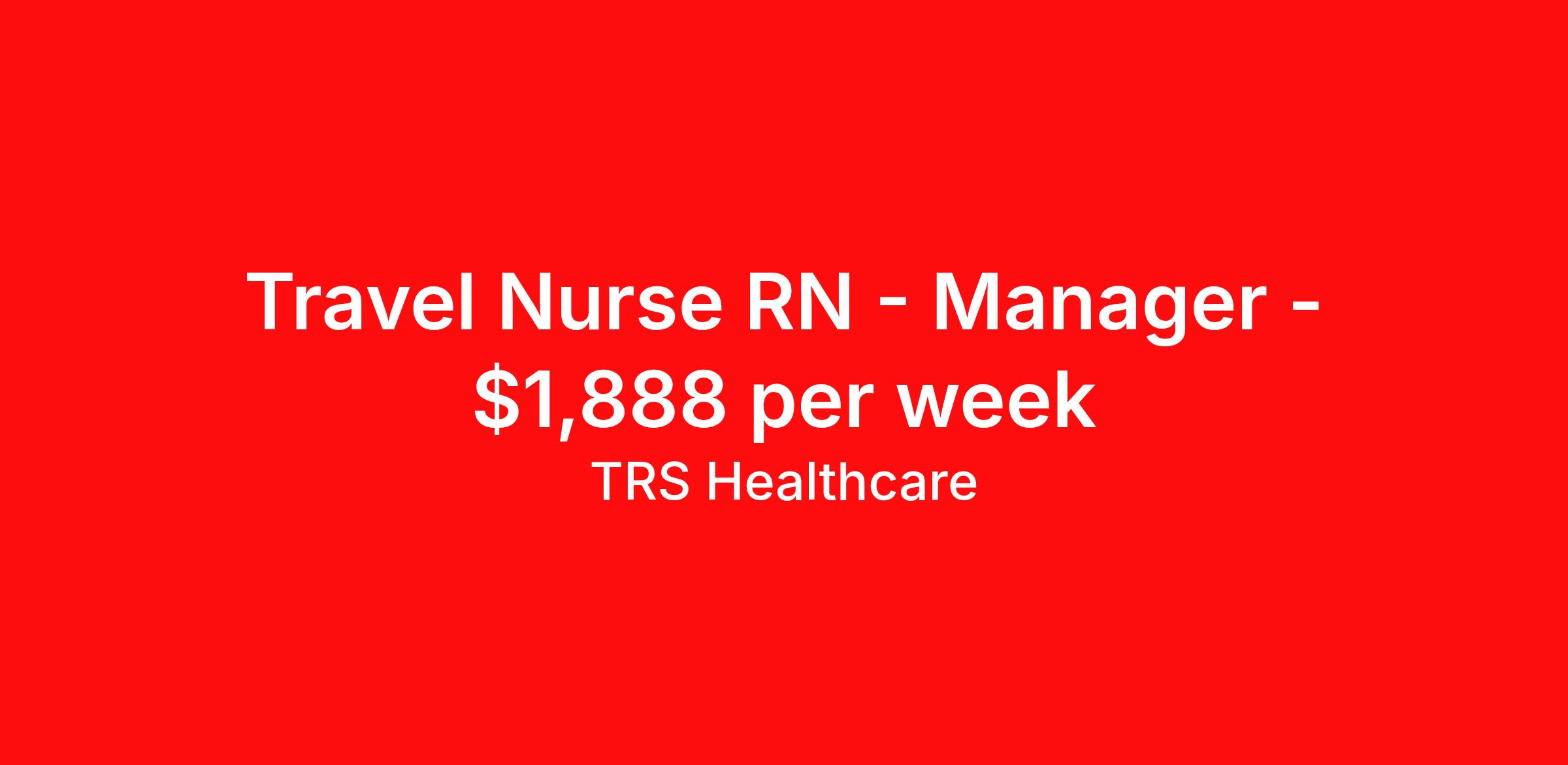 TRS Healthcare is seeking a travel nurse RN Manager for a travel nursing job in Penn Yan, New York. Job Description & Requirements Specialty: Manager Discipline: RN Start Date: 04/07/2026 Duration: 14 weeks 40 hours per week Shift: 8 hours, nights Employment Type: Travel TRS Healthcare Job ID 1447828. Pay package is based on 8 hour shifts and 40 hours per week (subject to confirmation) with tax-free stipend amount to be determined. Posted job title: Nurse Management Registered Nurse About TRS Healthcare TRS Healthcare has been a leader in the healthcare staffing industry for over 25 years, providing exceptional career opportunities for travel nurses and allied health professionals. An RN-founded, woman-owned company, TRS Healthcare has team members in all 50 states. We recruit and support registered nurses, licensed practical nurses, surgical technicians, respiratory therapists, imaging technologists, laboratory specialists, and other experienced nursing and allied healthcare professionals. We staff hundreds of healthcare facilities across the U.S. in urban, rural, and underserved areas, including multi-state hospital systems, critical access hospitals, rural community hospitals, long-term care facilities, trauma centers, standalone clinics, and more. Learn more about TRS Healthcare at trshealthcare.com .