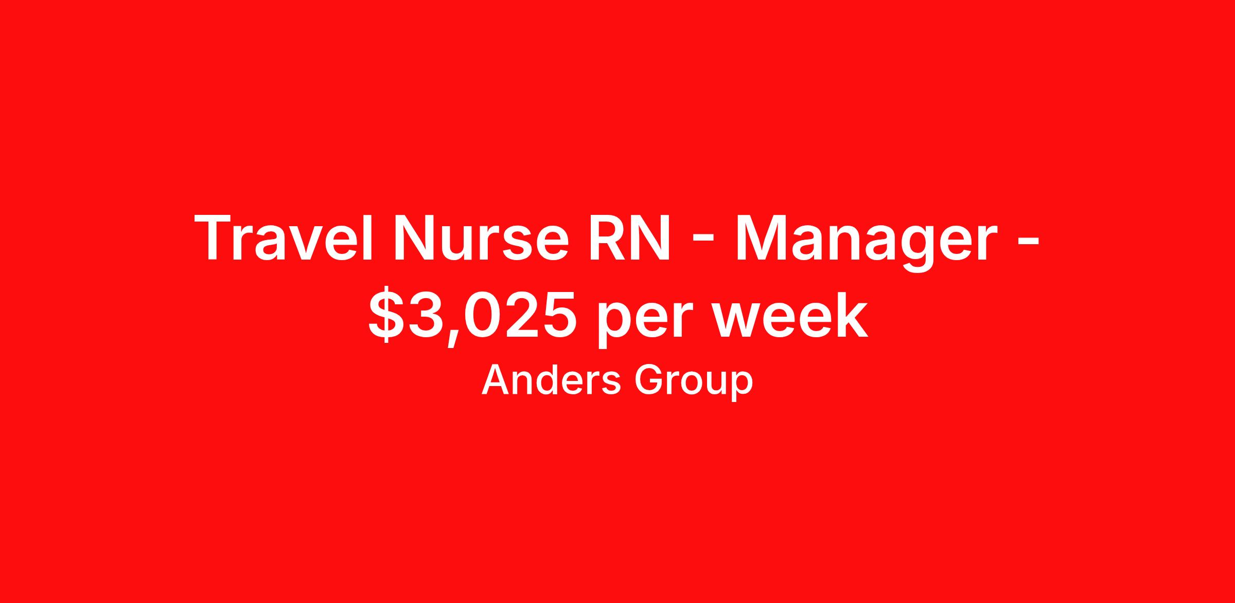 Anders Group is seeking a travel nurse RN Manager for a travel nursing job in Plymouth, Massachusetts. Job Description & Requirements Specialty: Manager Discipline: RN Start Date: 04/06/2026 Duration: 13 weeks 40 hours per week Shift: 8 hours, days Employment Type: Travel Anders Group Job ID 978913. Pay package is based on 8 hour shifts and 40 hours per week (subject to confirmation) with tax-free stipend amount to be determined. Posted job title: Registered Nurse About Anders Group WHY ANDERS? Anders Group is a Joint Commission accredited staffing agency and stands out from other agencies by our commitment to making sure our travelers are given the best customer service. Our team works hard to find the best jobs with the most aggressive rates! Anders Group offers rewarding assignments and competitive compensation packages, nationwide! We offer the following benefits from day one: Health Insurance, Including a Buy-up Option Dental Insurance Vision Insurance Life Insurance 401(k) Licensure Reimbursement Premium Pay Packages CEU Reimbursements Daily Per Diems Travel Reimbursements Rental Car Allowances Continuing Education Resources Referral Bonus And Many More! THE ANDERS DIFFERENCE You're committed to providing exceptional healthcare. We're committed to you. Anders Group was founded by a team of healthcare recruiters who had built strong relationships with healthcare facilities and professionals nationwide. As staffing firms shifted their focus to numbers and margins, these recruiters saw a need for a company to take a different approach to staffing. Anders Group was founded in 2010 to do just that. We focus on individual and facility goals to make quality placements. Great people working with great facilities make for the best placements. Through our focus on providing the best experience to Allied and Nursing health care professionals, Anders Group has grown to be a top staffing firm in Healthcare. We look forward to working with you! Benefits Medical benefits Dental benefits Vision benefits Life insurance 401k retirement plan License and certification reimbursement Continuing Education Referral bonus