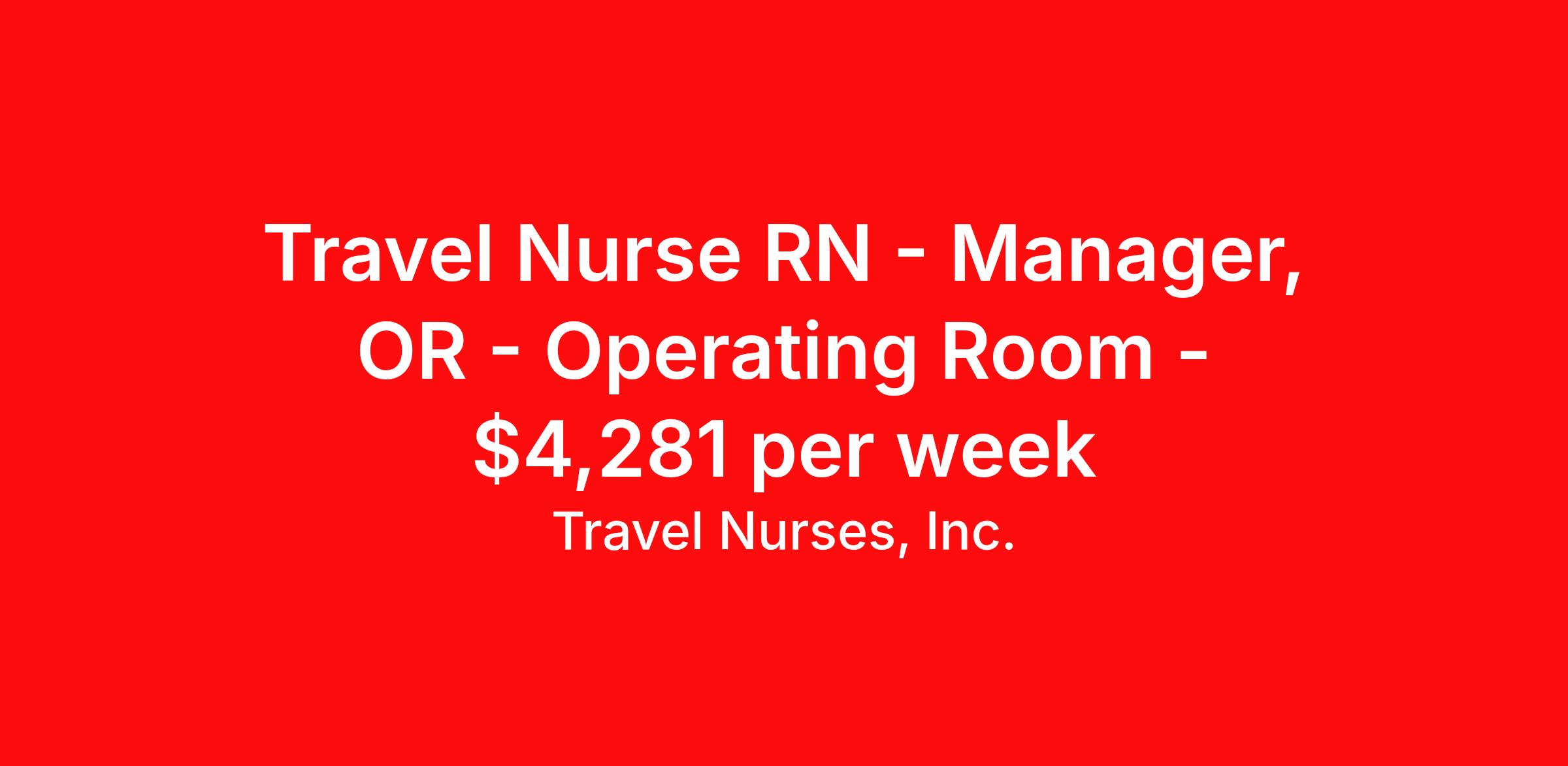 Travel Nurses, Inc. is seeking a travel nurse RN Manager, OR - Operating Room for a travel nursing job in Hermiston, Oregon. Job Description & Requirements Specialty: OR - Operating Room Discipline: RN Start Date: ASAP Duration: 13 weeks 40 hours per week Shift: 8 hours Employment Type: Travel Travel Nurses, Inc. Job ID 302471. Pay package is based on 8 hour shifts and 40 hours per week (subject to confirmation) with tax-free stipend amount to be determined. Posted job title: OR Manager About Travel Nurses, Inc. Travel Nurses, Inc. is a leading healthcare staffing agency that provides healthcare professionals with opportunities to work across the country. Founded by nurses in 1988, TNI has more than 30 years of experience in the industry. The agency initially focused on staffing operating room settings in the MidSouth. However, this quickly evolved to encompass all nursing specialties and allied health fields nationwide. At the heart of our mission is a profound respect for nurses, whom we consider the cornerstone of healthcare. This acknowledgment extends beyond the nursing profession alone. Travel Nurses, Inc. now proudly embraces a wide array of healthcare professionals, recognizing their crucial roles in our collective mission. Travel Nurses, Inc. is dedicated to providing comprehensive support and opportunities that will help facilitate complete career mobility in the healthcare field. Our commitment to transparency ensures that all professionals, not just nurses, can confidently accept any assignment without financial uncertainties. We prioritize our professionals’ well-being with comprehensive benefits packages, including day-one healthcare coverage, competitive salaries, bonuses and incentives. This underscores our unwavering commitment to offering the best possible rewards and support for all the professionals we serve. Benefits Weekly pay Continuing Education 401k retirement plan Wellness and fitness programs Mileage reimbursement Referral bonus Employee assistance programs Medical benefits Dental benefits Vision benefits Benefits start day 1 License and certification reimbursement Life insurance Retention bonus