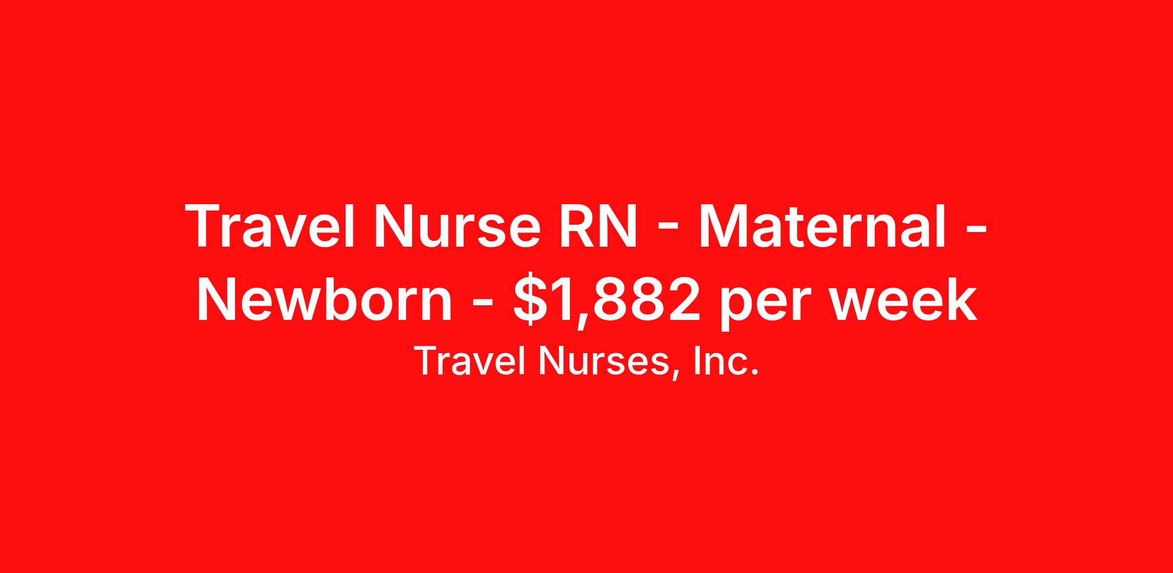 Travel Nurses, Inc. is seeking a travel nurse RN Maternal - Newborn for a travel nursing job in Columbus, Ohio. Job Description & Requirements Specialty: Maternal - Newborn Discipline: RN Start Date: 04/20/2026 Duration: 13 weeks 36 hours per week Shift: 12 hours Employment Type: Travel Travel Nurses, Inc. is a nurse-founded staffing agency built on transparency and trust. We are seeking an experienced registered nurse for a travel assignment. This position is ideal for clinicians who meet distance requirements and are ready to provide excellent patient care in a rewarding environment. The onboarding process you deserve: Our recruiters make the travel process simple from start to finish. Before every contract, clinicians complete an engagement letter review that outlines pay packages, compliance and expectations. With a dedicated recruiter and clinical support available 24/7, you can focus on caring for patients while we handle the rest. Qualifications: ~One to two years of recent experience in the posted specialty ~Active state or compact registered nurse license ~Basic Life Support (BLS) and specialty-specific certifications required Benefits: ~Competitive compensation and stipends ~Day-one medical, dental and vision coverage ~401(k) plan ~Paid onboarding requirements ~Nurse referral bonus program ~Dedicated recruiter and clinical support 24/7 ~Exclusive travel contract opportunities Pay and compensation: Pay varies by facility and location. Equal opportunity statement: Travel Nurses, Inc. is committed to diversity, equity and inclusion at every level. Travel Nurses, Inc. Job ID 306406. Pay package is based on 12 hour shifts and 36 hours per week (subject to confirmation) with tax-free stipend amount to be determined. Posted job title: Mother-Baby / Couplet Care / Post Partum Registered Nurse About Travel Nurses, Inc. Travel Nurses, Inc. is a leading healthcare staffing agency that provides healthcare professionals with opportunities to work across the country. Founded by nurses in 1988, TNI has more than 30 years of experience in the industry. The agency initially focused on staffing operating room settings in the MidSouth. However, this quickly evolved to encompass all nursing specialties and allied health fields nationwide. At the heart of our mission is a profound respect for nurses, whom we consider the cornerstone of healthcare. This acknowledgment extends beyond the nursing profession alone. Travel Nurses, Inc. now proudly embraces a wide array of healthcare professionals, recognizing their crucial roles in our collective mission. Travel Nurses, Inc. is dedicated to providing comprehensive support and opportunities that will help facilitate complete career mobility in the healthcare field. Our commitment to transparency ensures that all professionals, not just nurses, can confidently accept any assignment without financial uncertainties. We prioritize our professionals’ well-being with comprehensive benefits packages, including day-one healthcare coverage, competitive salaries, bonuses and incentives. This underscores our unwavering commitment to offering the best possible rewards and support for all the professionals we serve. Benefits Weekly pay Continuing Education 401k retirement plan Wellness and fitness programs Mileage reimbursement Referral bonus Employee assistance programs Medical benefits Dental benefits Vision benefits Benefits start day 1 License and certification reimbursement Life insurance Retention bonus