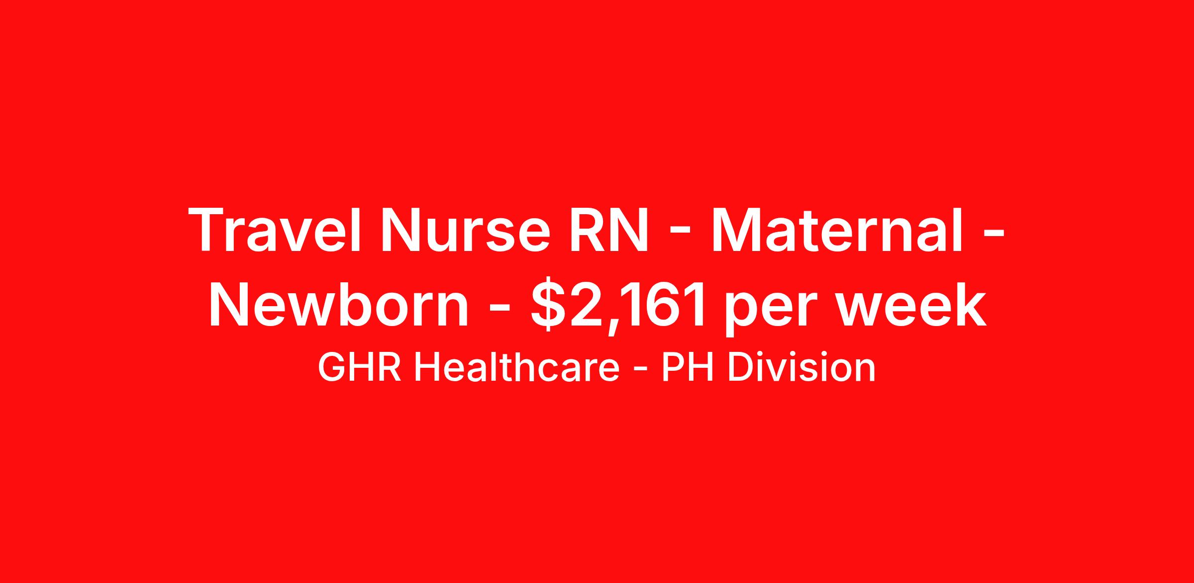 Travel Nurse RN - Maternal - Newborn - $2,161 per week