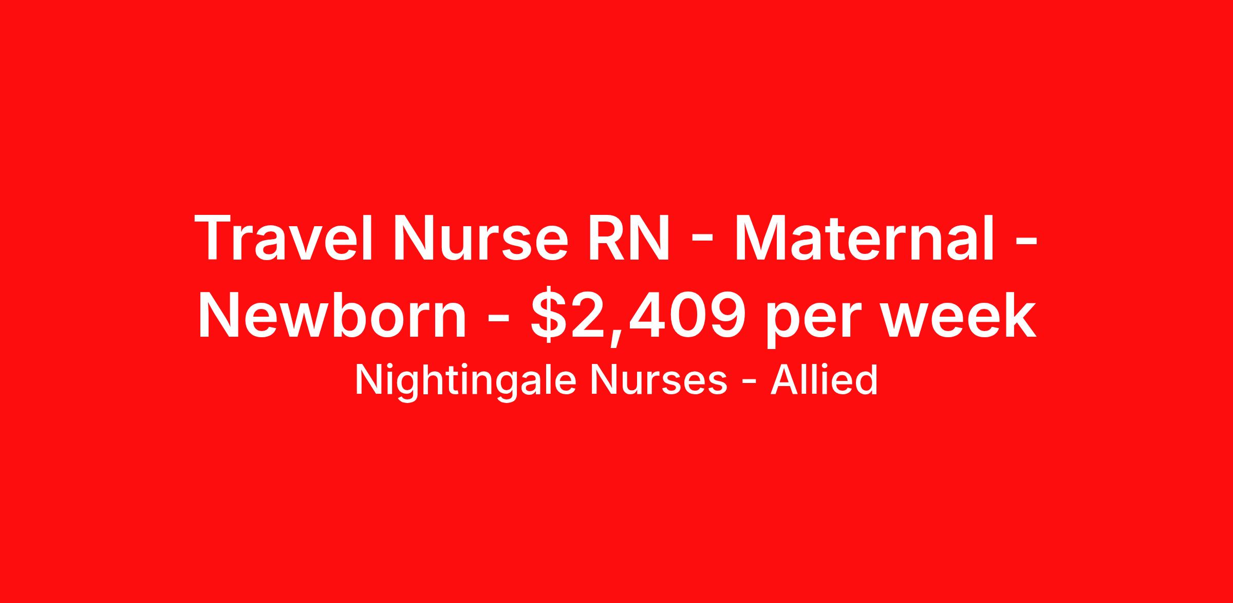 Nightingale Nurses - Allied is seeking a travel nurse RN Maternal - Newborn for a travel nursing job in Morristown, New Jersey. Job Description & Requirements Specialty: Maternal - Newborn Discipline: RN Start Date: 04/20/2026 Duration: 13 weeks 36 hours per week Shift: 12 hours, nights Employment Type: Travel 2 years of MB