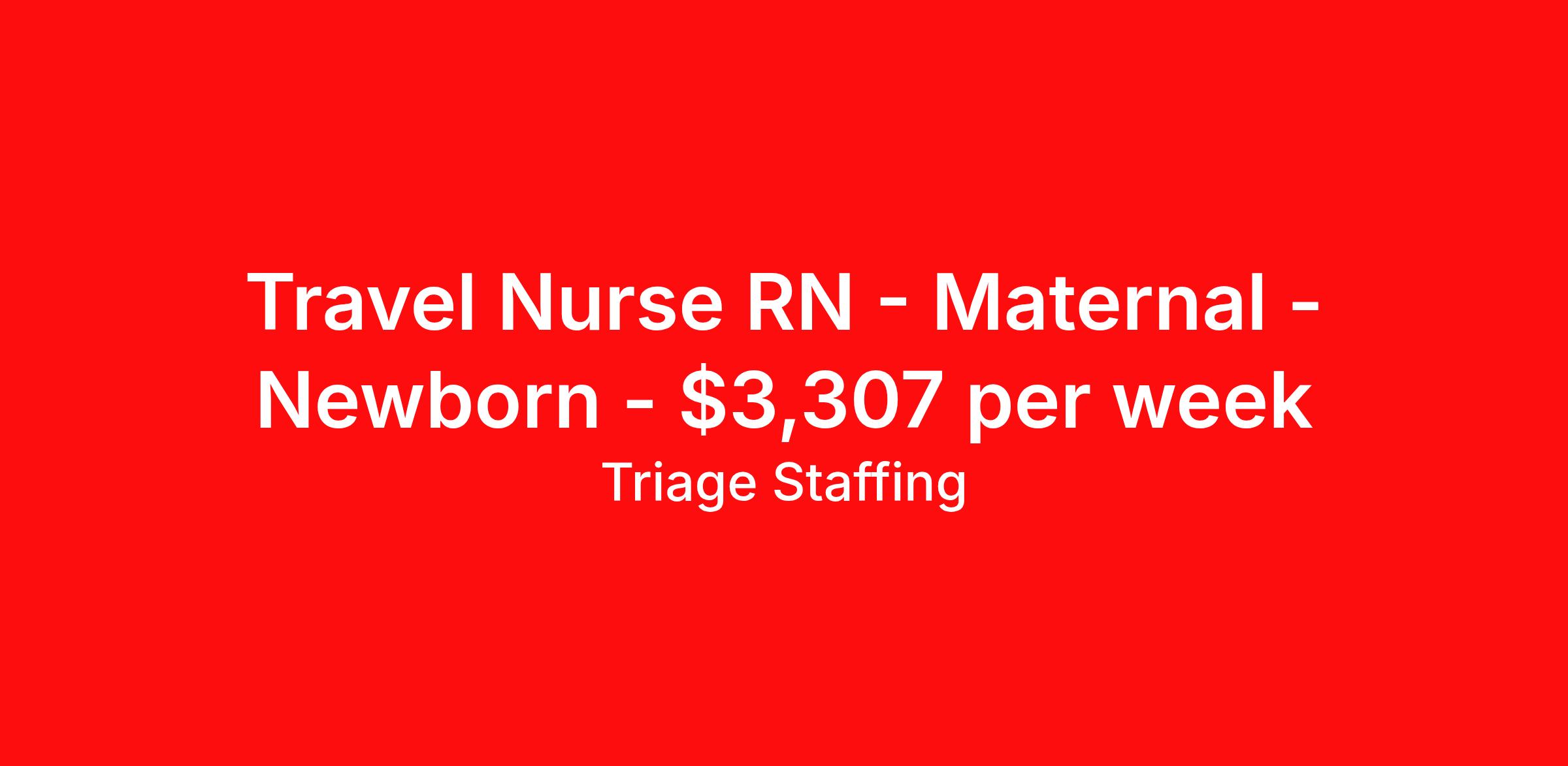 Triage Staffing is seeking a travel nurse RN Maternal - Newborn for a travel nursing job in Salinas, California. Job Description & Requirements Specialty: Maternal - Newborn Discipline: RN Start Date: 03/23/2026 Duration: 13 weeks 40 hours per week Shift: 10 hours, days Employment Type: Travel Travel Nursing: Postpartum/Mother Baby Salinas Location: Salinas Start Date: 3/23/2026 Shift Details: 10H Days 40 hours per week Length: 13 WEEKS Apply for specific facility details.Mother Baby RN Triage Staffing Job ID 4GX9JXGW. Posted job title: Nursing: Postpartum/Mother Baby About Triage Staffing At Triage, we prefer to be real . Real about expectations—both ours and yours. Real about how a decision you make today could affect your tomorrows. Real about how compensation actually works. Real about how great—or grating—your next supervisor may be. Being real allows everyone at Triage to be ready . Ready to serve you with real honesty. So if that gig near the ocean is really no day at the beach, or that third shift comes with a second-class rate, we tell you. So you can be ready, too. We staff all five major divisions of acute care—nursing, lab, radiology, cardiopulmonary and rehab therapy, offering: - Competitive, custom pay packages - One point of contact for both travelers and facilities (per division) - A reliable recruiter who's got your back throughout your entire assignment - In-house compliance and accounting specialists - A clinical liaison team available 24/7 to offer medical and professional support and career development - A mentoring program that is run and managed by actual clinicians—yeah, you read that right - And more (because of course there’s more) Are we the biggest? No. Are we the best? That’s rather subjective, but we’re trying to be. Will we work like hell to get you as close to your idea of heaven as possible? Yes. Yes, we will. Benefits: Day One comprehensive, nationwide insurance plans for health, vision and dental and life—including a HSA option Day One 401(k) program with employer-matching contributions once eligible Facility cancelling protection—your time is money on and off-the-clock Guaranteed hours Weekly paychecks via direct deposit Earned vacation bonuses for time worked Paid holidays Employee assistance program (EAP)—your mental health is important, too Continuing education, certification and licensing reimbursement Workers comp—because accidents happen Top-rated professional liability insurance Company provided housing options Referral bonus—$750 in your pocket after they’ve completed a 13-week assignment