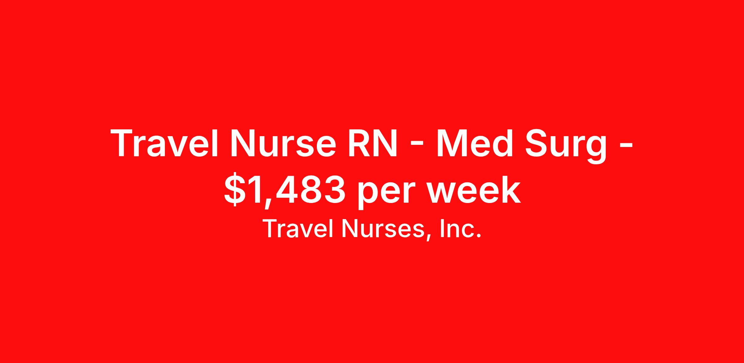 Travel Nurses, Inc. is seeking a travel nurse RN Med Surg for a travel nursing job in Tulsa, Oklahoma. Job Description & Requirements Specialty: Med Surg Discipline: RN Start Date: ASAP Duration: 13 weeks 36 hours per week Shift: 12 hours Employment Type: Travel Travel Nurses, Inc. Job ID 304209. Pay package is based on 12 hour shifts and 36 hours per week (subject to confirmation) with tax-free stipend amount to be determined. Posted job title: Medical Surgical Registered Nurse About Travel Nurses, Inc. Travel Nurses, Inc. is a leading healthcare staffing agency that provides healthcare professionals with opportunities to work across the country. Founded by nurses in 1988, TNI has more than 30 years of experience in the industry. The agency initially focused on staffing operating room settings in the MidSouth. However, this quickly evolved to encompass all nursing specialties and allied health fields nationwide. At the heart of our mission is a profound respect for nurses, whom we consider the cornerstone of healthcare. This acknowledgment extends beyond the nursing profession alone. Travel Nurses, Inc. now proudly embraces a wide array of healthcare professionals, recognizing their crucial roles in our collective mission. Travel Nurses, Inc. is dedicated to providing comprehensive support and opportunities that will help facilitate complete career mobility in the healthcare field. Our commitment to transparency ensures that all professionals, not just nurses, can confidently accept any assignment without financial uncertainties. We prioritize our professionals’ well-being with comprehensive benefits packages, including day-one healthcare coverage, competitive salaries, bonuses and incentives. This underscores our unwavering commitment to offering the best possible rewards and support for all the professionals we serve. Benefits Weekly pay Continuing Education 401k retirement plan Wellness and fitness programs Mileage reimbursement Referral bonus Employee assistance programs Medical benefits Dental benefits Vision benefits Benefits start day 1 License and certification reimbursement Life insurance Retention bonus