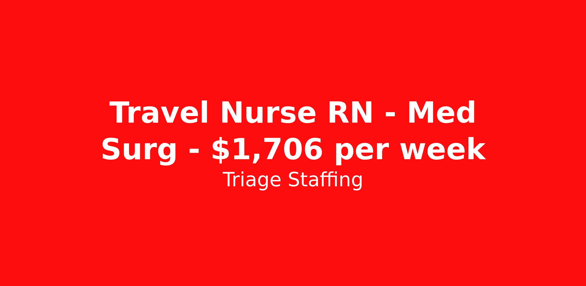 Triage Staffing is seeking a travel nurse RN Med Surg for a travel nursing job in Santa Fe, New Mexico. Job Description & Requirements Specialty: Med Surg Discipline: RN Start Date: 04/06/2026 Duration: 13 weeks 36 hours per week Shift: 12 hours, nights Employment Type: Travel Travel Nursing: Med/Surg Santa Fe Location: Santa Fe Start Date: 4/6/2026 Shift Details: 12H Nights 36 hours per week Length: 13 WEEKS Apply for specific facility details.Med Surg RN Triage Staffing Job ID 4QQ4AMTP. Posted job title: Nursing: Med/Surg About Triage Staffing At Triage, we prefer to be real . Real about expectations—both ours and yours. Real about how a decision you make today could affect your tomorrows. Real about how compensation actually works. Real about how great—or grating—your next supervisor may be. Being real allows everyone at Triage to be ready . Ready to serve you with real honesty. So if that gig near the ocean is really no day at the beach, or that third shift comes with a second-class rate, we tell you. So you can be ready, too. We staff all five major divisions of acute care—nursing, lab, radiology, cardiopulmonary and rehab therapy, offering: - Competitive, custom pay packages - One point of contact for both travelers and facilities (per division) - A reliable recruiter who's got your back throughout your entire assignment - In-house compliance and accounting specialists - A clinical liaison team available 24/7 to offer medical and professional support and career development - A mentoring program that is run and managed by actual clinicians—yeah, you read that right - And more (because of course there’s more) Are we the biggest? No. Are we the best? That’s rather subjective, but we’re trying to be. Will we work like hell to get you as close to your idea of heaven as possible? Yes. Yes, we will. Benefits: Day One comprehensive, nationwide insurance plans for health, vision and dental and life—including a HSA option Day One 401(k) program with employer-matching contributions once eligible Facility cancelling protection—your time is money on and off-the-clock Guaranteed hours Weekly paychecks via direct deposit Earned vacation bonuses for time worked Paid holidays Employee assistance program (EAP)—your mental health is important, too Continuing education, certification and licensing reimbursement Workers comp—because accidents happen Top-rated professional liability insurance Company provided housing options Referral bonus—$750 in your pocket after they’ve completed a 13-week assignment