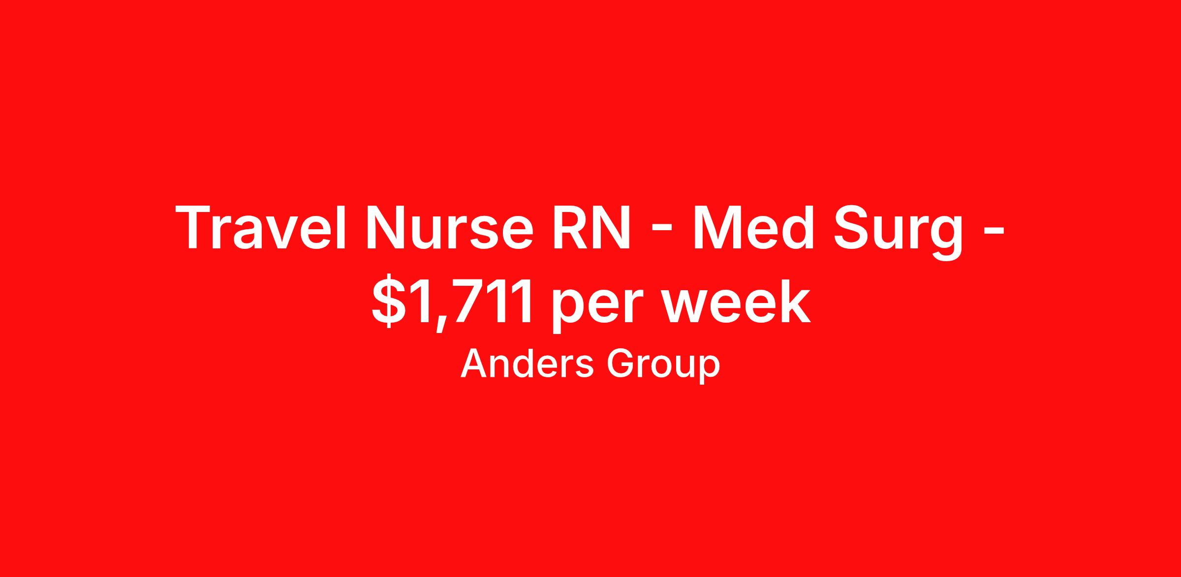Anders Group is seeking a travel nurse RN Med Surg for a travel nursing job in Harlingen, Texas. Job Description & Requirements Specialty: Med Surg Discipline: RN Start Date: 04/08/2026 Duration: 13 weeks 36 hours per week Shift: 12 hours, days Employment Type: Travel Anders Group Job ID 1001718. Pay package is based on 12 hour shifts and 36 hours per week (subject to confirmation) with tax-free stipend amount to be determined. Posted job title: RN - Med/Surg - Valley Baptist MC - Harlingen - 0700 1930 (07:00 - 19:30) About Anders Group WHY ANDERS? Anders Group is a Joint Commission accredited staffing agency and stands out from other agencies by our commitment to making sure our travelers are given the best customer service. Our team works hard to find the best jobs with the most aggressive rates! Anders Group offers rewarding assignments and competitive compensation packages, nationwide! We offer the following benefits from day one: Health Insurance, Including a Buy-up Option Dental Insurance Vision Insurance Life Insurance 401(k) Licensure Reimbursement Premium Pay Packages CEU Reimbursements Daily Per Diems Travel Reimbursements Rental Car Allowances Continuing Education Resources Referral Bonus And Many More! THE ANDERS DIFFERENCE You're committed to providing exceptional healthcare. We're committed to you. Anders Group was founded by a team of healthcare recruiters who had built strong relationships with healthcare facilities and professionals nationwide. As staffing firms shifted their focus to numbers and margins, these recruiters saw a need for a company to take a different approach to staffing. Anders Group was founded in 2010 to do just that. We focus on individual and facility goals to make quality placements. Great people working with great facilities make for the best placements. Through our focus on providing the best experience to Allied and Nursing health care professionals, Anders Group has grown to be a top staffing firm in Healthcare. We look forward to working with you! Benefits Medical benefits Dental benefits Vision benefits Life insurance 401k retirement plan License and certification reimbursement Continuing Education Referral bonus