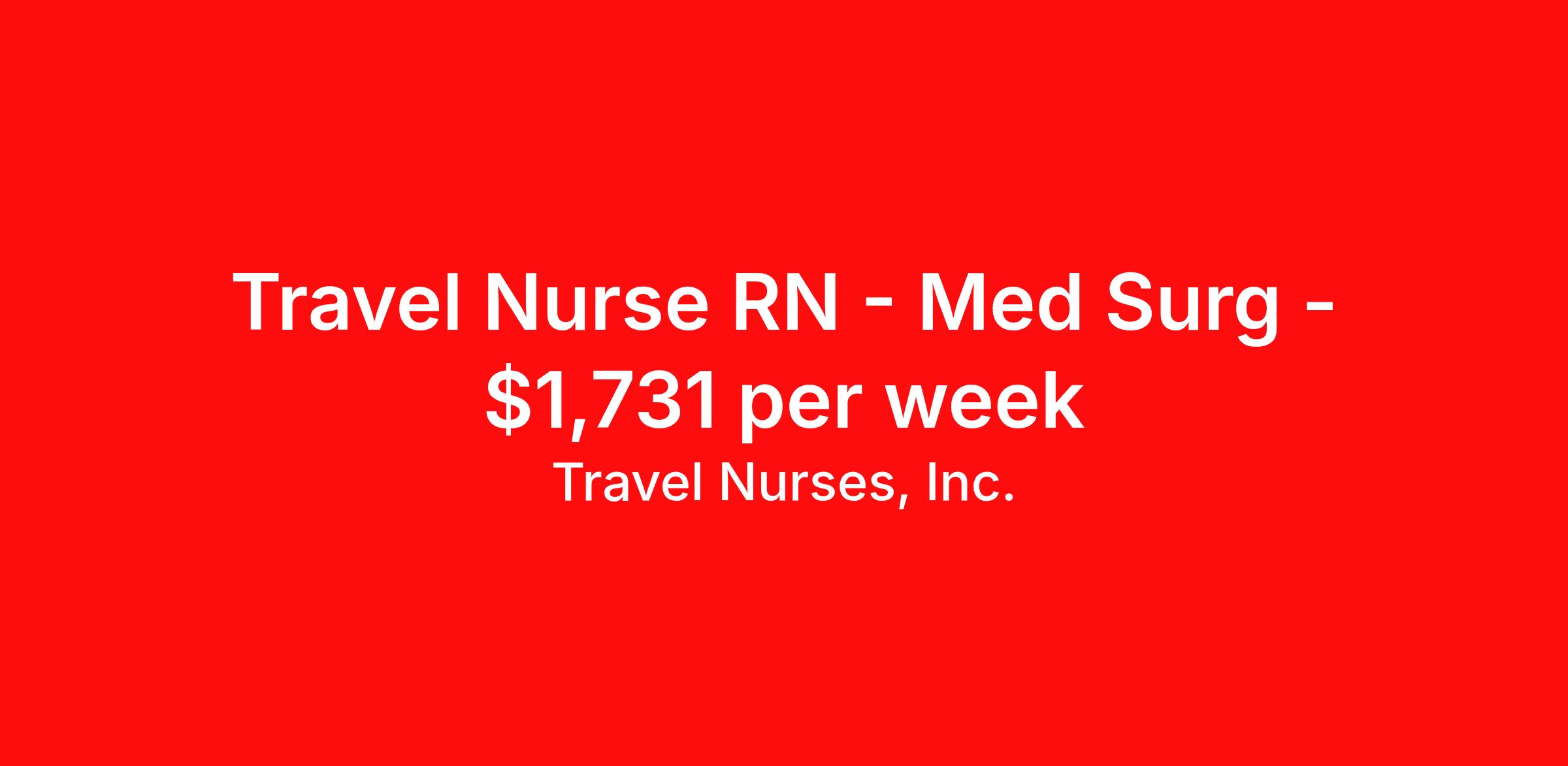 Travel Nurses, Inc. is seeking a travel nurse RN Med Surg for a travel nursing job in St. Louis, Missouri. Job Description & Requirements Specialty: Med Surg Discipline: RN Start Date: ASAP Duration: 13 weeks 36 hours per week Shift: 12 hours Employment Type: Travel Travel Nurses, Inc. Job ID 307744. Pay package is based on 12 hour shifts and 36 hours per week (subject to confirmation) with tax-free stipend amount to be determined. Posted job title: AUTO OFFER: Travel: RN Med Surg 7E Medical - Days About Travel Nurses, Inc. Travel Nurses, Inc. is a leading healthcare staffing agency that provides healthcare professionals with opportunities to work across the country. Founded by nurses in 1988, TNI has more than 30 years of experience in the industry. The agency initially focused on staffing operating room settings in the MidSouth. However, this quickly evolved to encompass all nursing specialties and allied health fields nationwide. At the heart of our mission is a profound respect for nurses, whom we consider the cornerstone of healthcare. This acknowledgment extends beyond the nursing profession alone. Travel Nurses, Inc. now proudly embraces a wide array of healthcare professionals, recognizing their crucial roles in our collective mission. Travel Nurses, Inc. is dedicated to providing comprehensive support and opportunities that will help facilitate complete career mobility in the healthcare field. Our commitment to transparency ensures that all professionals, not just nurses, can confidently accept any assignment without financial uncertainties. We prioritize our professionals’ well-being with comprehensive benefits packages, including day-one healthcare coverage, competitive salaries, bonuses and incentives. This underscores our unwavering commitment to offering the best possible rewards and support for all the professionals we serve. Benefits Weekly pay Continuing Education 401k retirement plan Wellness and fitness programs Mileage reimbursement Referral bonus Employee assistance programs Medical benefits Dental benefits Vision benefits Benefits start day 1 License and certification reimbursement Life insurance Retention bonus
