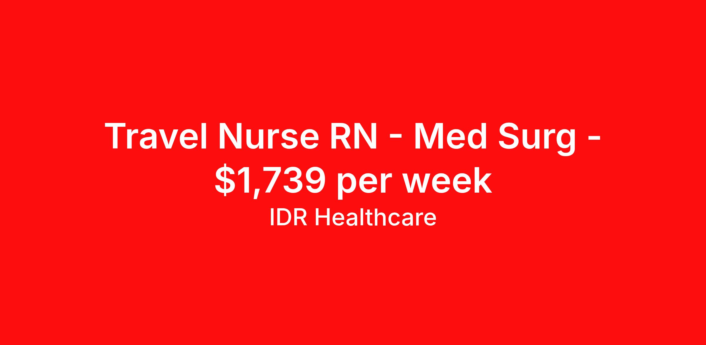 IDR Healthcare is seeking a travel nurse RN Med Surg for a travel nursing job in Gallup, New Mexico. Job Description & Requirements Specialty: Med Surg Discipline: RN Start Date: ASAP Duration: 13 weeks 40 hours per week Shift: 8 hours, nights Employment Type: Travel IDR Healthcare is an awarding winning staffing firm that believes it is a privilege and awesome responsibility to serve those who selflessly care for others. Our mission is to empower healthcare professionals to achieve their fullest potential both personally and professionally while they create positive change within the healthcare community. We exercise true grit, tenacity, and authenticity while embracing and ownership mindset to go above and beyond providing healthcare professionals a world class experience. We are employee owned and our travelers and clinicians earn shares/equity by just completing multiple assignments! We have been named SIA’s Fastest Growing Staffing Firms and have won ClearlyRated® Best of Staffing for 11 consecutive years! This cements our commitment to clinician satisfaction earning top net promoter scores putting us in the top 2% of agencies in North America! TravelFarWithIDR and see what an extraordinary experience is all about! Benefits 2024 World Staffing Best Staffing Firms to Work For! ESOP (Equity) Healthcare Benefits for up to 30 days Between Assignments Comprehensive Health Insurance Dental and Vision Insurance Sign-On, Completion, & Referral Bonus Programs License and Certification Reimbursement Weekly Pay and Competitive Compensation Large Network of Clients and Job Opportunities 401k retirement plan Exclusive Assignments IDR Job ID 484319. Pay package is based on 8 hour shifts and 40 hours per week (subject to confirmation) with tax-free stipend amount to be determined. About IDR Healthcare IDR Healthcare is an awarding winning staffing firm that believes it is a privilege and awesome responsibility to serve those who selflessly care for others. Our mission is to empower healthcare professionals to achieve their fullest potential both personally and professionally while they create positive change within the healthcare community. We exercise true grit, tenacity, and authenticity while embracing and ownership mindset to go above and beyond providing healthcare professionals a world class experience. We are employee owned and our travelers and clinicians earn shares/equity by just completing multiple assignments! We have been named SIA’s Fastest Growing Staffing Firms and have won ClearlyRated® Best of Staffing for 11 consecutive years! This cements our commitment to clinician satisfaction earning top net promoter scores putting us in the top 2% of agencies in North America! Help us give back! For every booked assignment, proceeds are donated to St. Jude and Feeding America! Last year we raised over $18,000 for St. Jude and provided over 49,000 meals for children in need. TravelFarWithIDR and see what it is all about! Benefits Weekly pay 401k retirement plan Referral bonus Medical benefits Dental benefits License and certification reimbursement Vision benefits