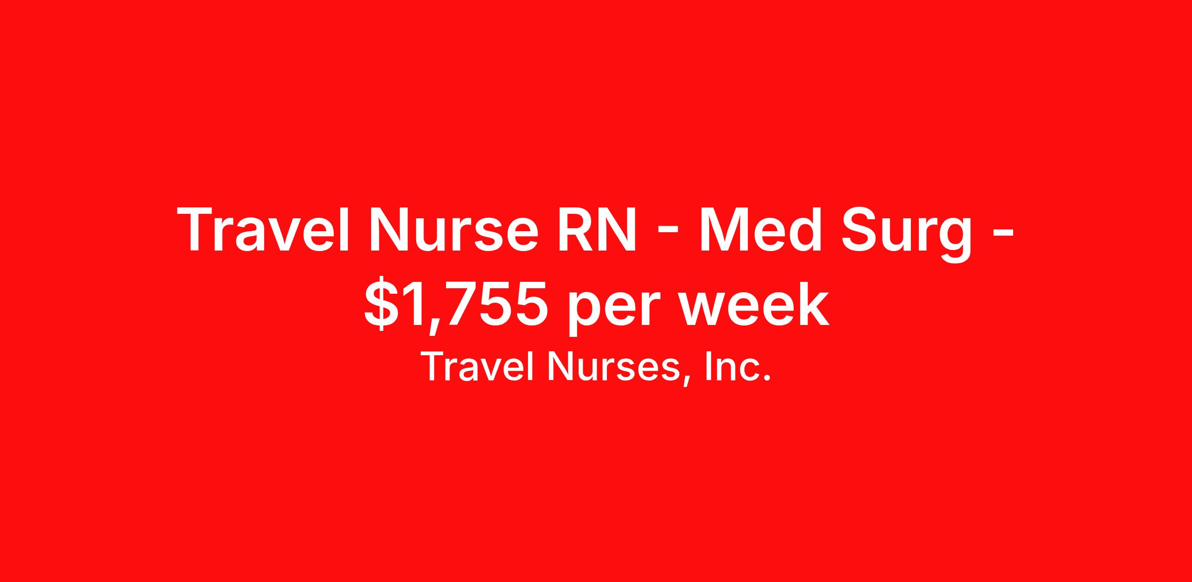 Travel Nurses, Inc. is seeking a travel nurse RN Med Surg for a travel nursing job in Sylva, North Carolina. Job Description & Requirements Specialty: Med Surg Discipline: RN Start Date: 04/06/2026 Duration: 13 weeks 36 hours per week Shift: 12 hours Employment Type: Travel Travel Nurses, Inc. Job ID 308348. Pay package is based on 12 hour shifts and 36 hours per week (subject to confirmation) with tax-free stipend amount to be determined. Posted job title: LPNT East Travel RN: MS (7P-7A) Harris Regional Sylva, NC About Travel Nurses, Inc. Travel Nurses, Inc. is a leading healthcare staffing agency that provides healthcare professionals with opportunities to work across the country. Founded by nurses in 1988, TNI has more than 30 years of experience in the industry. The agency initially focused on staffing operating room settings in the MidSouth. However, this quickly evolved to encompass all nursing specialties and allied health fields nationwide. At the heart of our mission is a profound respect for nurses, whom we consider the cornerstone of healthcare. This acknowledgment extends beyond the nursing profession alone. Travel Nurses, Inc. now proudly embraces a wide array of healthcare professionals, recognizing their crucial roles in our collective mission. Travel Nurses, Inc. is dedicated to providing comprehensive support and opportunities that will help facilitate complete career mobility in the healthcare field. Our commitment to transparency ensures that all professionals, not just nurses, can confidently accept any assignment without financial uncertainties. We prioritize our professionals’ well-being with comprehensive benefits packages, including day-one healthcare coverage, competitive salaries, bonuses and incentives. This underscores our unwavering commitment to offering the best possible rewards and support for all the professionals we serve. Benefits Weekly pay Continuing Education 401k retirement plan Wellness and fitness programs Mileage reimbursement Referral bonus Employee assistance programs Medical benefits Dental benefits Vision benefits Benefits start day 1 License and certification reimbursement Life insurance Retention bonus