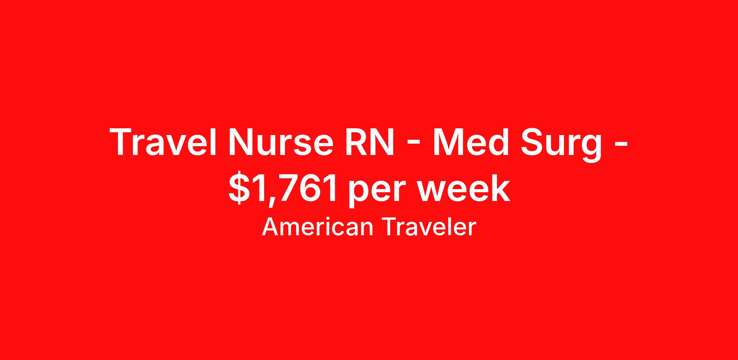 American Traveler is seeking a travel nurse RN Med Surg for a travel nursing job in Harlingen, Texas. Job Description & Requirements Specialty: Med Surg Discipline: RN Start Date: 04/08/2026 Duration: 13 weeks 36 hours per week Shift: 12 hours, nights Employment Type: Travel Assignment Overview Shift: Nights, 3x12hrs Hours: 36 hrs/wk Start Date: Apr 8, 2026 Length: 13 weeks Openings: 1 Description American Traveler is seeking an experienced RN for a Med/Surg position at a hospital in Harlingen, TX, requiring a minimum of 2 years of Med/Surg experience and an active TX or compact RN license. Details Works in a comprehensive Med/Surg unit (5th floor) within an acute care hospital setting Day shift schedule: 7:00 AM – 7:30 PM 13-week contract with 36 hours per week Requirements Active TX or compact RN license required Current certifications required: BLS, ACLS, and CPI Minimum 2 years of Med/Surg RN experience required Social Security number (full SSN preferred; last 4 digits acceptable), driver's license, and date of birth required for consideration Two professional references required for consideration Additional Information Local candidates are accepted and eligible for the same rate as travel candidates Current or recent Tenet Health employees are not eligible — candidates who have worked for Tenet Health within the past 12 months may not be considered American Traveler Job ID P-683788. Pay package is based on 12 hour shifts and 36 hours per week (subject to confirmation) with tax-free stipend amount to be determined. Posted job title: Travel RN - Med/Surg About American Traveler With over 25 years of experience, American Traveler has established a reputation for outstanding customer service. Our team ensures a smooth, worry-free experience for those starting on or expanding their travel nursing and allied careers. With thousands of travel nursing and allied jobs nationwide, our attentive and approachable recruiters find positions that align perfectly with your career aspirations and personal requirements. American Traveler offers exceptional benefits, including premium medical, dental, vision and life insurance beginning day one of your assignment, generous 401(k) match, substantial housing stipends, and more. Additionally, with 24/7 support and access to our in-house clinicians, you are assured confidence and comfort throughout your assignment. With our team behind you, you can relax and enjoy a rewarding travel career.