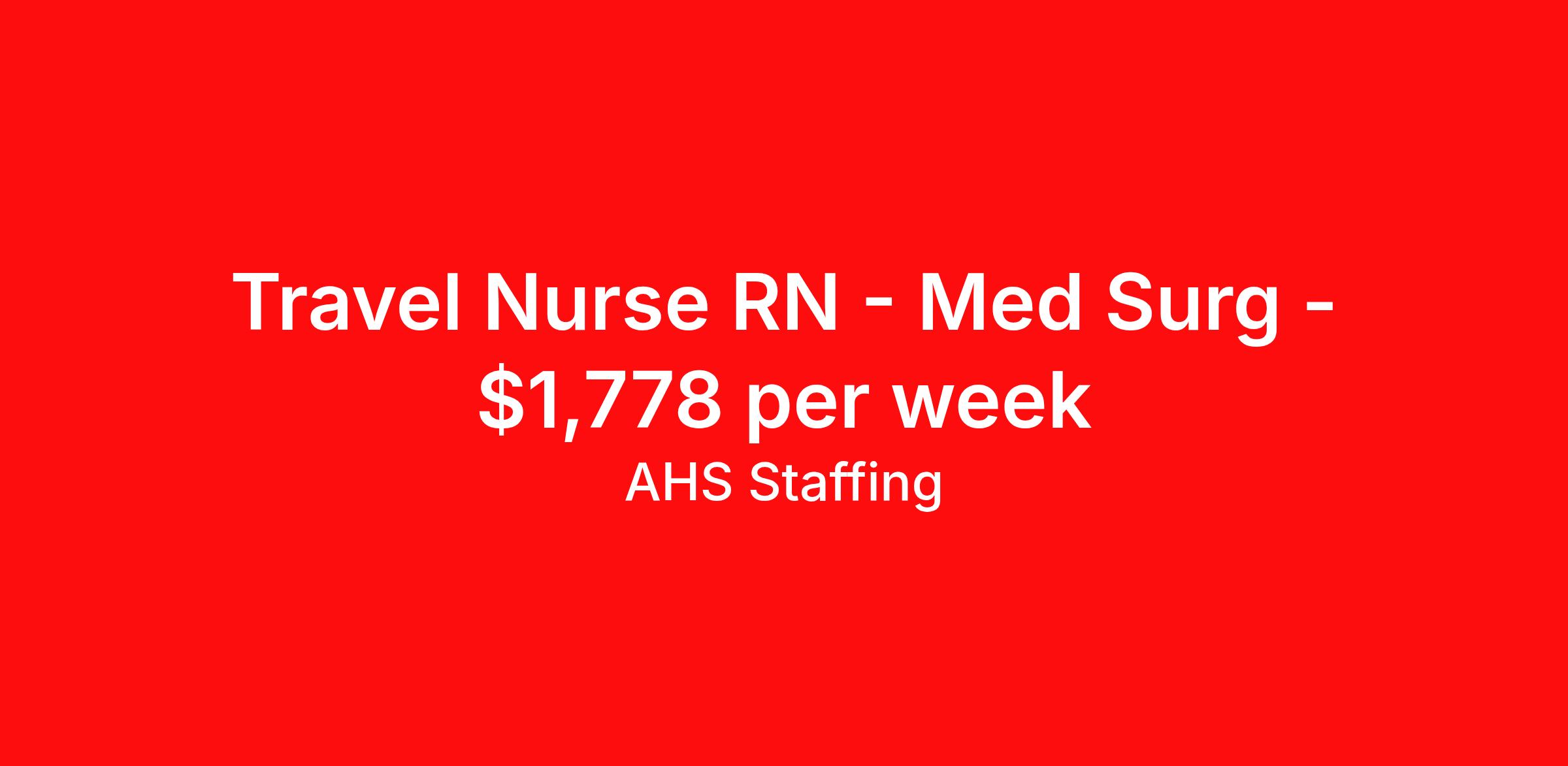 AHS Staffing is seeking a travel nurse RN Med Surg for a travel nursing job in Sylva, North Carolina. Job Description & Requirements Specialty: Med Surg Discipline: RN Start Date: 04/06/2026 Duration: 13 weeks 36 hours per week Shift: 12 hours, nights Employment Type: Travel AHS Staffing is looking for a Med - Surg Registered Nurse in Sylva, NC for a Long Term (Travel) position. This assignment is expected to last 13 weeks. Apply today to speak with a recruiter about the position! AHS Job ID 2371539. Posted job title: Registered Nurse Med - Surg About AHS Staffing At AHS Staffing, we are committed to providing a personalized, transparent, and rewarding experience. We go beyond the transactional nature of the industry by offering individualized job matching, clear communication, no-nonsense pay rates, and dedicated recruiter support 24/7. When you're on assignment with us, you'll get access to industry-leading benefits, including comprehensive medical coverage, 401(k) matching, competitive pay packages, licensure reimbursement, weekly pay, and more. Easily manage your day-to-day with our mobile app where you can view your assignment details, manage your compliance and licensing documents, submit timecards, and browse new jobs to land your next adventure. As a nationally recognized and award-winning agency, we understand the importance of providing a seamless experience from application to placement. Our top priority is matching you with assignments that align with both your personal and professional goals. Join us to experience working with an agency that truly prioritizes your success and well-being and see why thousands of healthcare professionals continue to trust us with their careers.