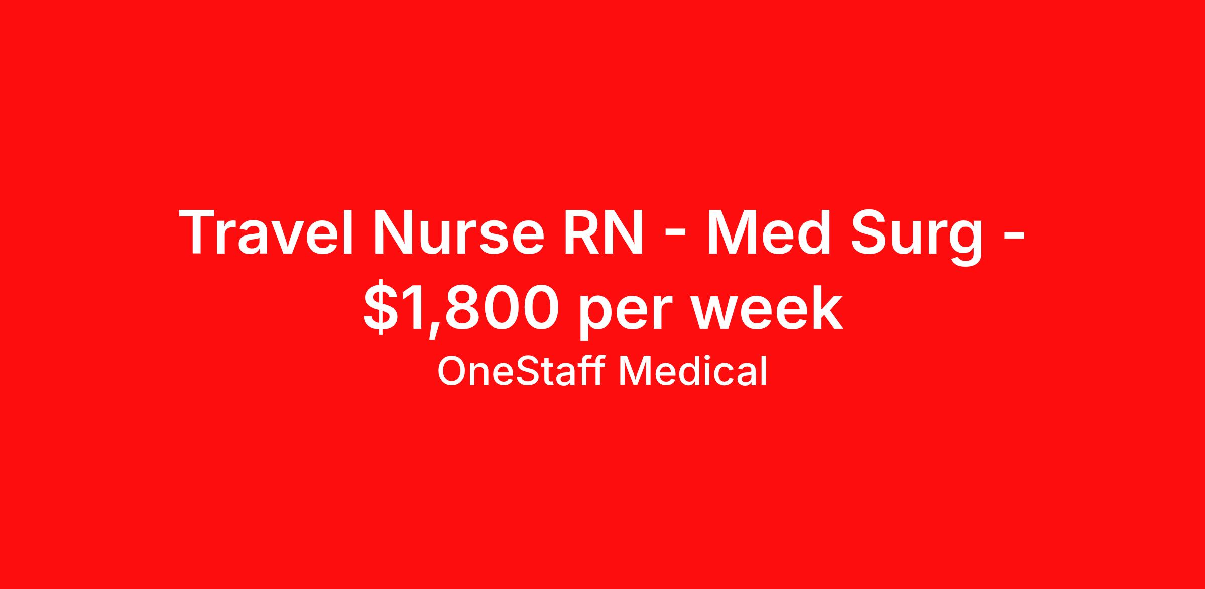 OneStaff Medical is seeking a travel nurse RN Med Surg for a travel nursing job in Pulaski, Tennessee. Job Description & Requirements Specialty: Med Surg Discipline: RN Start Date: 04/06/2026 Duration: 13 weeks 36 hours per week Shift: 12 hours, nights Employment Type: Travel About OneStaff Medical You deserve a partner that is working for you. Be bold and let us do just that. We’ll take care of you while you are away from your own “home base” in every way we can, and ideally do more than you expect. Your team at OneStaff is dedicated to finding the perfect assignments (for you), negotiate the best rates and handles any issues that may arise while you are on assignment. We take great pride in building relationships with our traveling professionals and we enjoy hearing about your experiences. Whatever the need, we are here to help along the journey. We understand you are the heart and soul of what we are. Whether it is housing, payroll, travel, benefits, or just a friendly voice to talk to, we are there every step of the way. The company you choose is the most important decision you will make in your traveling career. We get that, so we’re committed to you 24 hours-a-day, 7 days-a-week. We’re your “one” solution in travel assignments and here to assist whether helping with accelerating your trajectory towards your career goals or meeting your travel requirements. Benefits Weekly pay Holiday Pay Guaranteed Hours 401k retirement plan Pet insurance Company provided housing options Sick pay Wellness and fitness programs Referral bonus Medical benefits Dental benefits Vision benefits