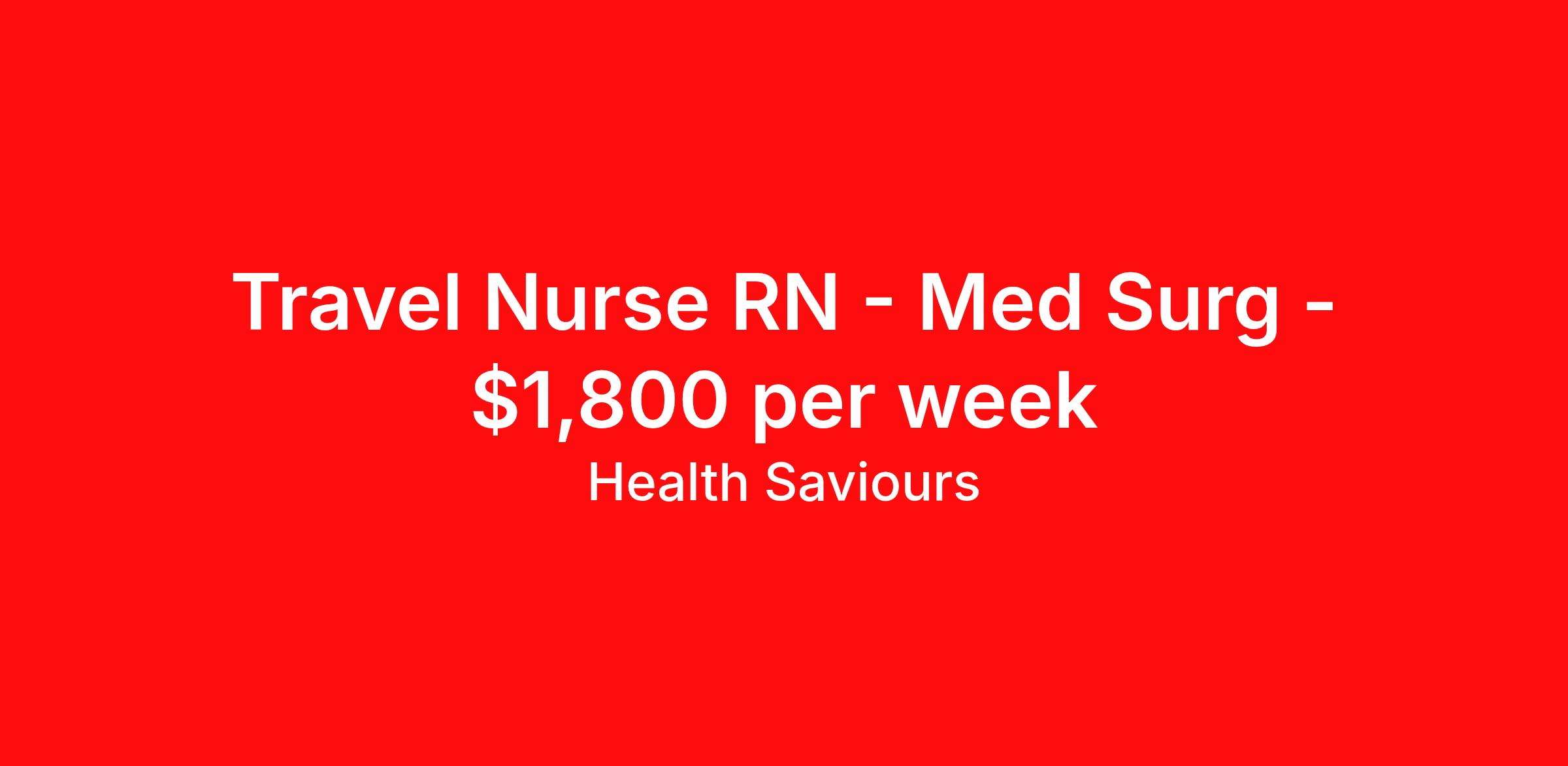 Health Saviours is seeking a travel nurse RN Med Surg for a travel nursing job in Atlanta, Georgia. Job Description & Requirements Specialty: Med Surg Discipline: RN Duration: 8 weeks 36 hours per week Shift: 12 hours, days, nights Employment Type: Travel High acuity floor, Surgery Trauma Must be willing to work given shifts, no Block schedules BLS req, ACLS preferred NO RTO, EPIC required, Minimum 2 yrs exp in specialty. Pt population Spinal Neuro Trauma Surgical, Gun Shots, Quads, Paraplegic Nursing Support Techs, patient ratio: 5:1, phlebotomists-yes, unit secretary at night- yes, ED nurse and admitting unit complete a nurse handoff. About Health Saviours Health Saviours At Health Saviours, we are passionate about making a difference in the healthcare industry by providing top-notch staffing solutions to meet the evolving needs of healthcare facilities and professionals across the USA. Founded on the principles of integrity, excellence, and compassion, we have established ourselves as a trusted partner in the healthcare community, dedicated to fostering a culture of excellence and support for both our clients and our staff. Our Vision Our vision at Health Saviours is to be the leading provider of healthcare staffing solutions, recognized for our unwavering commitment to quality, professionalism, and innovation. We strive to create a world where every healthcare professional feels valued, empowered, and inspired to make a positive impact in the lives of others. Our Approach At Health Saviours, we take a personalized approach to staffing, focusing on building meaningful relationships with both our clients and our candidates. We understand that every healthcare facility has unique staffing requirements, and every healthcare professional has unique career goals. That’s why we take the time to listen, understand, and tailor our solutions to meet the specific needs of each client and candidate. Benefits Weekly pay Holiday Pay Retention bonus Referral bonus