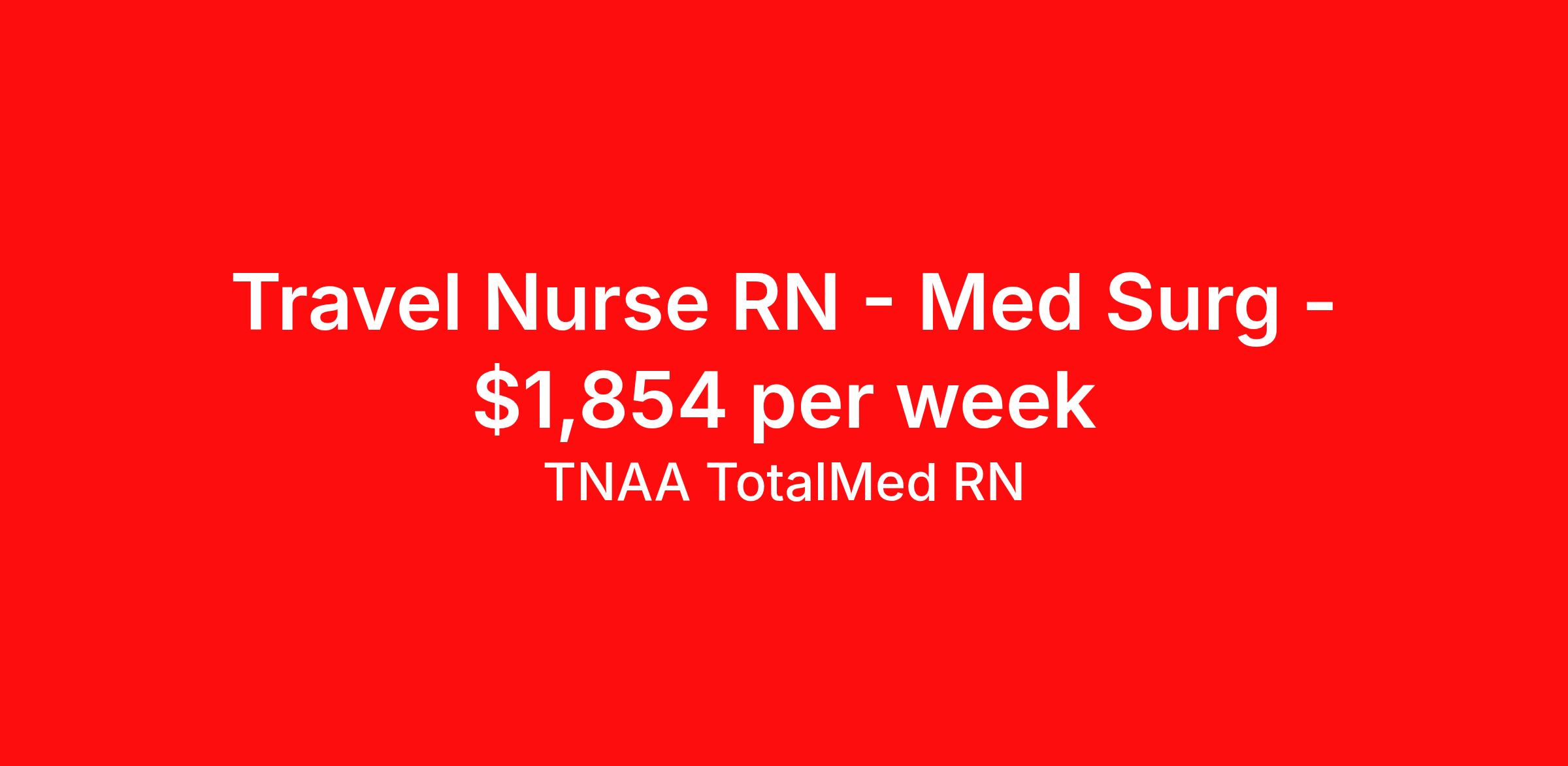 TNAA TotalMed RN is seeking a travel nurse RN Med Surg for a travel nursing job in Waverly, Iowa. Job Description & Requirements Specialty: Med Surg Discipline: RN Start Date: ASAP Duration: 12 weeks 34 hours per week Shift: 12 hours, nights Employment Type: Travel We're looking for Medical Surgical RNs for an immediate travel nurse opening in Waverly, IA. The right RN should have 1-2 years recent acute care experience. Read below for more requirements. As a MedSurg RN, you will conduct patient assessments and prioritize data collection based on patients' immediate conditions or needs. MedSurg RNs perform ongoing assessments and appropriate treatments as ordered by a physician. Documenting patient findings and providing education and support to patients' families is essential to this travel nurse position. As a Medical Surgical Travel Nurse, you should be prepared to perform the following tasks: Provide bedside care for a variety of patients, including pre- and post-op patients. Prepare, administer and record prescribed medication, reporting any adverse reactions to treatment. Change dressings, insert catheters and start IVs. Prepares equipment and aids physician during examination and treatment of patient. Educates patients on surgical procedures. Participates in discharge planning and initiates patient education plan as prescribed by physician. Medical Surgical Travel Nurses should be able to stand and walk for long periods of time, as well as bend, lean and stoop without difficulty. RNs should be able to easily lift 20 pounds. Moving or lifting of patients may require lifting of up to 50 pounds at times. RNs will work in a fast-paced environment treating patients that may be confused, agitated, and/or uncooperative. Requirements*: ACLS, BLS, PALS, 2 Years * Additional certifications may be required before beginning an assignment. TotalMed Travel Job ID 1387232. Pay package is based on 12 hour shifts and 34 hours per week (subject to confirmation) with tax-free stipend amount to be determined. Posted job title: Medical/Surgical - MedSurg RN - Travel Nurse About TNAA TotalMed RN TotalMed is a Top Ten, travel nursing and healthcare staffing agency with the mission of igniting purpose in healthcare. The organization staffs nurses, therapists, pharmacists, and other clinicians of all specialties in all 50 states. They offer local and travel jobs and match caregivers with the right organization to assist both facilities and patients. As an organization, they focus on putting highly-skilled staff into facilities to ensure adequate staffing for a better patient experience. TotalMed specializes in recruiting and placing healthcare professionals in travel, PRN, and permanent positions across the country in Nursing and Allied Health. Throughout 2020, the organization filled roles at even the most short-staffed facilities during the most challenging time in healthcare. By matching the right travel healthcare professional with the right organization, TotalMed continues to offer a lifeline to facilities and their patients. Benefits Weekly pay Guaranteed Hours Continuing Education 401k retirement plan Sick pay Wellness and fitness programs Referral bonus Employee assistance programs Medical benefits Dental benefits Vision benefits Benefits start day 1