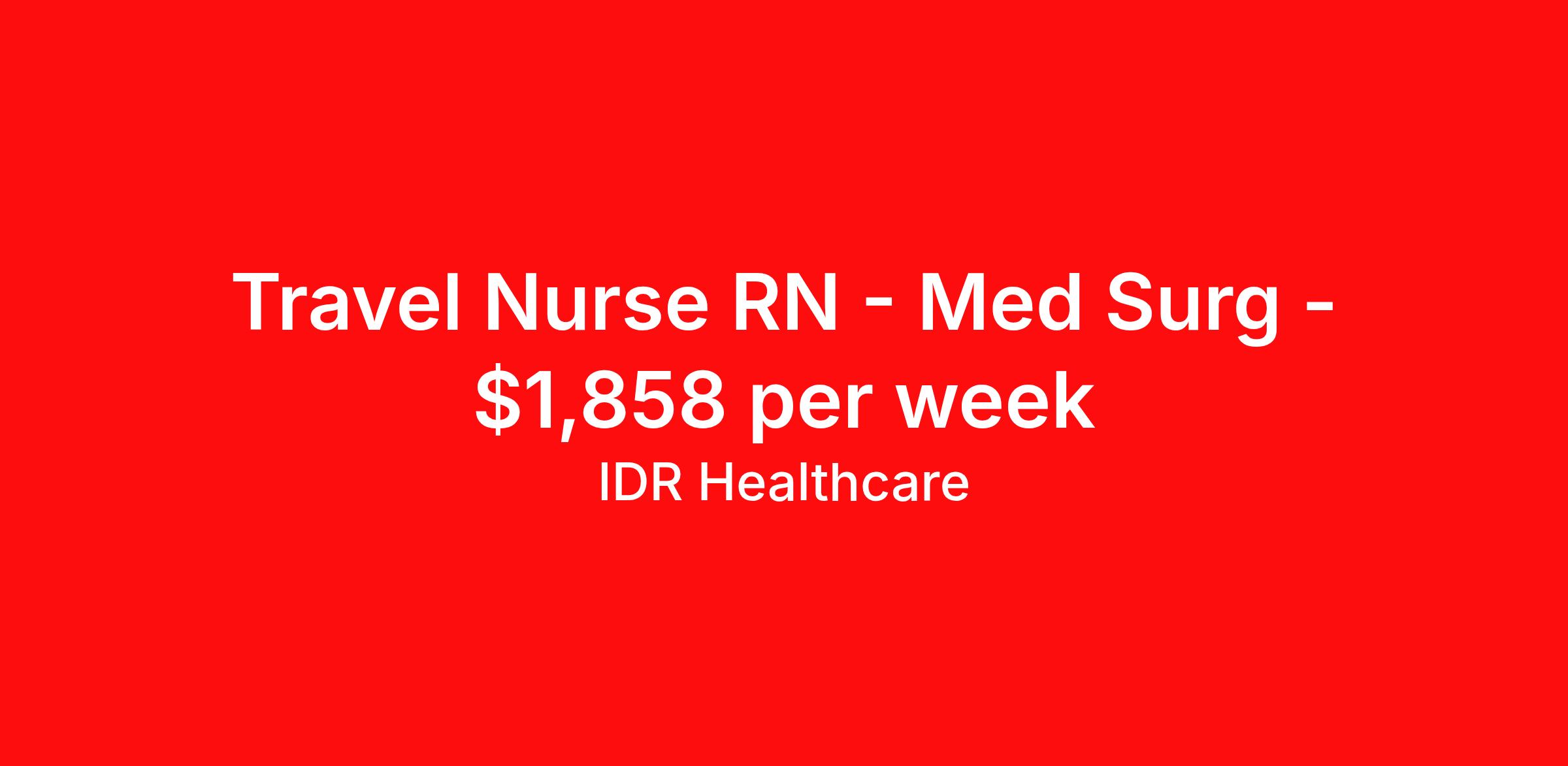 IDR Healthcare is seeking a travel nurse RN Med Surg for a travel nursing job in Cleveland, Ohio. Job Description & Requirements Specialty: Med Surg Discipline: RN Start Date: ASAP Duration: 13 weeks 36 hours per week Shift: 12 hours Employment Type: Travel IDR Healthcare is an awarding winning staffing firm that believes it is a privilege and awesome responsibility to serve those who selflessly care for others. Our mission is to empower healthcare professionals to achieve their fullest potential both personally and professionally while they create positive change within the healthcare community. We exercise true grit, tenacity, and authenticity while embracing and ownership mindset to go above and beyond providing healthcare professionals a world class experience. We are employee owned and our travelers and clinicians earn shares/equity by just completing multiple assignments! We have been named SIA’s Fastest Growing Staffing Firms and have won ClearlyRated® Best of Staffing for 11 consecutive years! This cements our commitment to clinician satisfaction earning top net promoter scores putting us in the top 2% of agencies in North America! TravelFarWithIDR and see what an extraordinary experience is all about! Benefits 2024 World Staffing Best Staffing Firms to Work For! ESOP (Equity) Healthcare Benefits for up to 30 days Between Assignments. Comprehensive Health Insurance Dental and Vision Insurance Sign-On, Completion, & Referral Bonus Programs License and Certification Reimbursement Weekly Pay and Competitive Compensation Large Network of Clients and Job Opportunities 401k retirement plan Exclusive Assignments IDR Job ID 340837. Pay package is based on 12 hour shifts and 36 hours per week (subject to confirmation) with tax-free stipend amount to be determined. About IDR Healthcare IDR Healthcare is an awarding winning staffing firm that believes it is a privilege and awesome responsibility to serve those who selflessly care for others. Our mission is to empower healthcare professionals to achieve their fullest potential both personally and professionally while they create positive change within the healthcare community. We exercise true grit, tenacity, and authenticity while embracing and ownership mindset to go above and beyond providing healthcare professionals a world class experience. We are employee owned and our travelers and clinicians earn shares/equity by just completing multiple assignments! We have been named SIA’s Fastest Growing Staffing Firms and have won ClearlyRated® Best of Staffing for 11 consecutive years! This cements our commitment to clinician satisfaction earning top net promoter scores putting us in the top 2% of agencies in North America! Help us give back! For every booked assignment, proceeds are donated to St. Jude and Feeding America! Last year we raised over $18,000 for St. Jude and provided over 49,000 meals for children in need. TravelFarWithIDR and see what it is all about! Benefits Weekly pay 401k retirement plan Referral bonus Medical benefits Dental benefits License and certification reimbursement Vision benefits