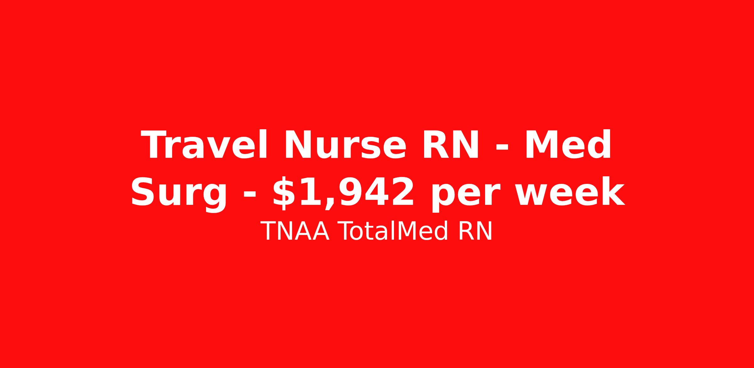 TNAA TotalMed RN is seeking a travel nurse RN Med Surg for a travel nursing job in Espanola, New Mexico. Job Description & Requirements Specialty: Med Surg Discipline: RN Start Date: 03/30/2026 Duration: 13 weeks 36 hours per week Shift: 12 hours, nights Employment Type: Travel We're looking for Medical Surgical RNs for an immediate travel nurse opening in Espanola, NM. The right RN should have 1-2 years recent acute care experience. Read below for more requirements. As a MedSurg RN, you will conduct patient assessments and prioritize data collection based on patients' immediate conditions or needs. MedSurg RNs perform ongoing assessments and appropriate treatments as ordered by a physician. Documenting patient findings and providing education and support to patients' families is essential to this travel nurse position. As a Medical Surgical Travel Nurse, you should be prepared to perform the following tasks: Provide bedside care for a variety of patients, including pre- and post-op patients. Prepare, administer and record prescribed medication, reporting any adverse reactions to treatment. Change dressings, insert catheters and start IVs. Prepares equipment and aids physician during examination and treatment of patient. Educates patients on surgical procedures. Participates in discharge planning and initiates patient education plan as prescribed by physician. Medical Surgical Travel Nurses should be able to stand and walk for long periods of time, as well as bend, lean and stoop without difficulty. RNs should be able to easily lift 20 pounds. Moving or lifting of patients may require lifting of up to 50 pounds at times. RNs will work in a fast-paced environment treating patients that may be confused, agitated, and/or uncooperative. Requirements*: BLS, 2 Years * Additional certifications may be required before beginning an assignment. TotalMed Travel Job ID 1383290. Pay package is based on 12 hour shifts and 36 hours per week (subject to confirmation) with tax-free stipend amount to be determined. Posted job title: Medical/Surgical - MedSurg RN - Travel Nurse About TNAA TotalMed RN TotalMed is a Top Ten, travel nursing and healthcare staffing agency with the mission of igniting purpose in healthcare. The organization staffs nurses, therapists, pharmacists, and other clinicians of all specialties in all 50 states. They offer local and travel jobs and match caregivers with the right organization to assist both facilities and patients. As an organization, they focus on putting highly-skilled staff into facilities to ensure adequate staffing for a better patient experience. TotalMed specializes in recruiting and placing healthcare professionals in travel, PRN, and permanent positions across the country in Nursing and Allied Health. Throughout 2020, the organization filled roles at even the most short-staffed facilities during the most challenging time in healthcare. By matching the right travel healthcare professional with the right organization, TotalMed continues to offer a lifeline to facilities and their patients. Benefits Weekly pay Guaranteed Hours Continuing Education 401k retirement plan Sick pay Wellness and fitness programs Referral bonus Employee assistance programs Medical benefits Dental benefits Vision benefits Benefits start day 1
