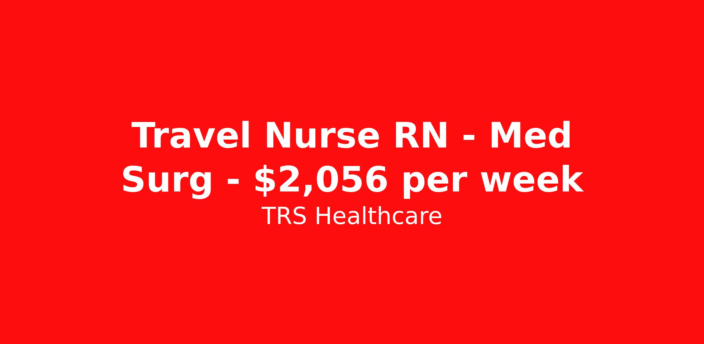 TRS Healthcare is seeking a travel nurse RN Med Surg for a travel nursing job in Evansville, Indiana. Job Description & Requirements Specialty: Med Surg Discipline: RN Start Date: ASAP Duration: 13 weeks 36 hours per week Shift: 12 hours, nights Employment Type: Travel TRS Healthcare Job ID 1438942. Pay package is based on 12 hour shifts and 36 hours per week (subject to confirmation) with tax-free stipend amount to be determined. Posted job title: Medical Surgical Registered Nurse About TRS Healthcare TRS Healthcare has been a leader in the healthcare staffing industry for over 25 years, providing exceptional career opportunities for travel nurses and allied health professionals. An RN-founded, woman-owned company, TRS Healthcare has team members in all 50 states. We recruit and support registered nurses, licensed practical nurses, surgical technicians, respiratory therapists, imaging technologists, laboratory specialists, and other experienced nursing and allied healthcare professionals. We staff hundreds of healthcare facilities across the U.S. in urban, rural, and underserved areas, including multi-state hospital systems, critical access hospitals, rural community hospitals, long-term care facilities, trauma centers, standalone clinics, and more. Learn more about TRS Healthcare at trshealthcare.com .