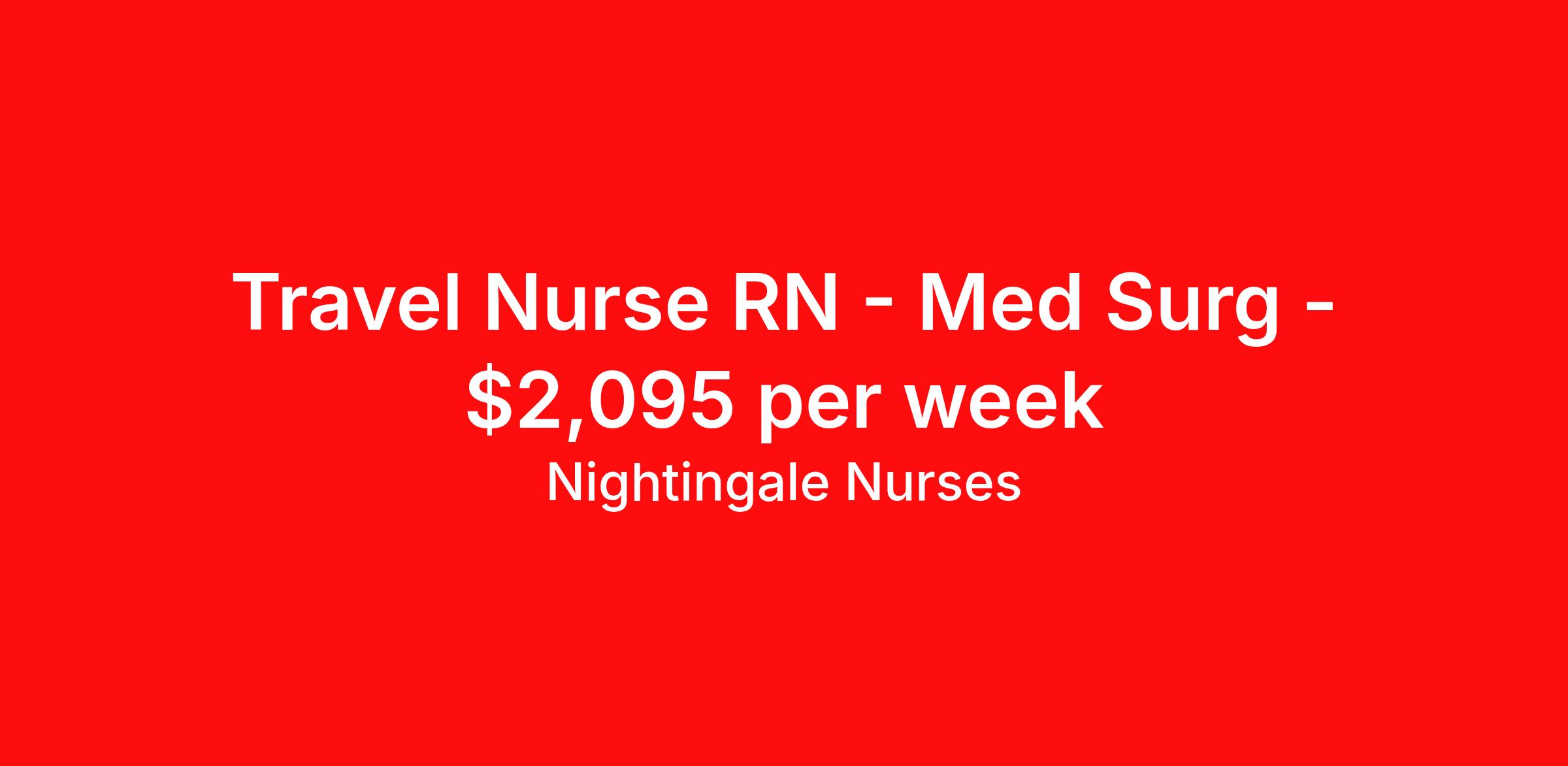 Nightingale Nurses is seeking a travel nurse RN Med Surg for a travel nursing job in Rockford, Illinois. Job Description & Requirements Specialty: Med Surg Discipline: RN Start Date: 03/21/2026 Duration: 13 weeks 36 hours per week Shift: 12 hours, days Employment Type: Travel About Nightingale Nurses the first name in travel nursing You may not realize it, but as an RN with real world hospital experience, you are legendary. To the lives you’ve helped save, the patients you’ve cared for, and to the hospitals where you’ve done it. And you’re just getting started. Legendary is where Nightingale begins. We’re the first name in travel nursing, representing only the very best RNs. That’s why hospitals prefer us, allowing us to offer exceptional travel nursing assignments all over the US, as well as the highest pay rates and most extensive benefits in the industry. Nightingale facilitates every aspect of your travel nursing assignment, so you can focus on doing what you do best. We want you to grow, explore, and enjoy unrivaled liberty, the freedom to nurse.