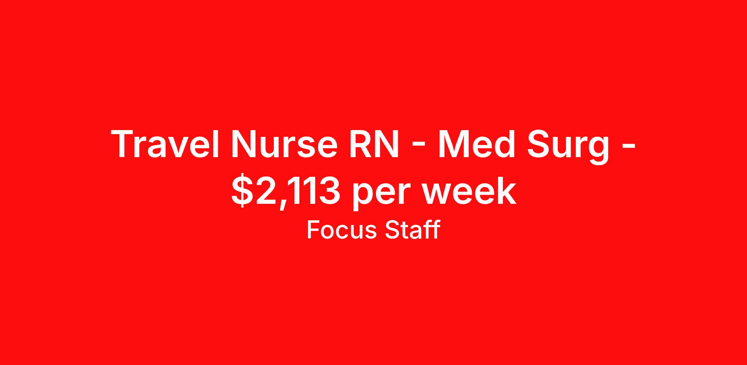Travel Nurse RN - Med Surg - $2,113 per week