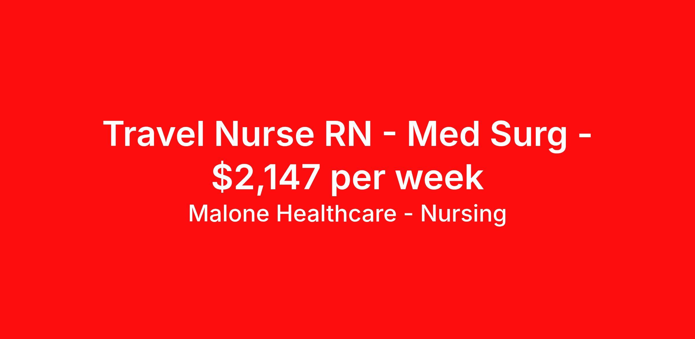 Malone Healthcare - Nursing is seeking a travel nurse RN Med Surg for a travel nursing job in Marshfield, Wisconsin. Job Description & Requirements Specialty: Med Surg Discipline: RN Duration: 13 weeks 36 hours per week Shift: 12 hours, days, nights, flexible Employment Type: Travel To apply quickly before the position closes, please reach out to me at: Phone: Text: Valerian D’lima Malone Healthcare About Malone Healthcare - Nursing With a commitment to providing a higher standard of service and experience in patient care, Malone Healthcare places expert nurses and allied health professionals in rewarding careers throughout the United States. As a leading healthcare staffing agency, Malone’s focus on compliance and integrity translates to a seamless experience for our team members and partner facilities. When you work with Malone Healthcare, you can rely on over 50 years of proven experience placing exceptional professionals in quality healthcare settings. Benefits Weekly pay Holiday Pay Guaranteed Hours Continuing Education 401k retirement plan Pet insurance Referral bonus Medical benefits Dental benefits Vision benefits License and certification reimbursement Life insurance