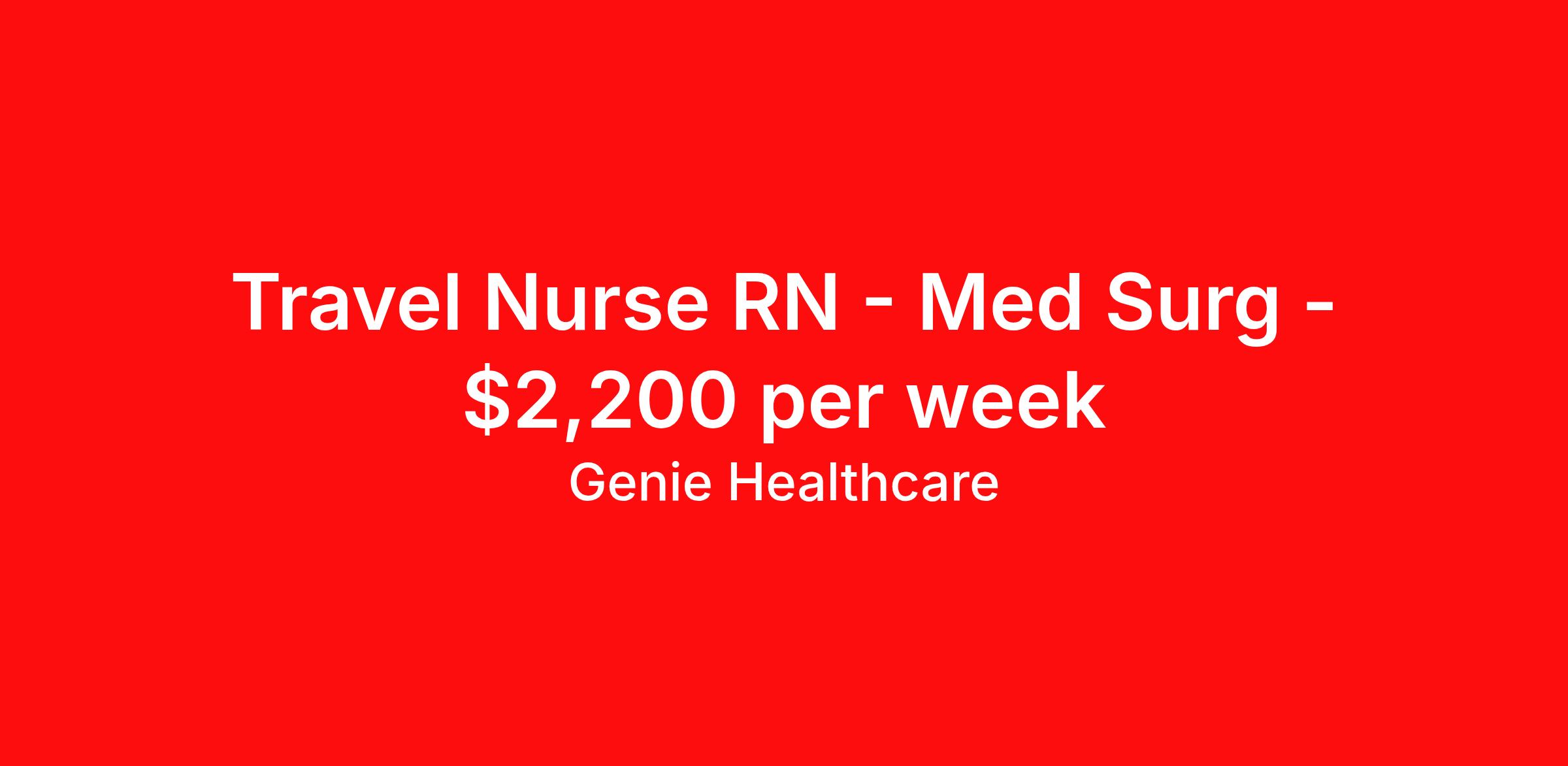 Genie Healthcare is seeking a travel nurse RN Med Surg for a travel nursing job in Rockford, Illinois. Job Description & Requirements Specialty: Med Surg Discipline: RN Start Date: 04/06/2026 Duration: 13 weeks 36 hours per week Shift: 12 hours, nights Employment Type: Travel Med/Surg - Neuro 7pm-730am every other weekend and every other holiday as needed Must have an RN-IL license 2 plus years' experience, mid-large hospital experience. About Genie Healthcare Genie Healthcare is one of the fastest growing Nurse Travel Agencies in the USA. Genie serves hundreds of facilities and has over 4000 current travel RN contracts open at any given time. Genie provides travel RN’s flexibility, support, top pay scale, housing and the 1 rated, multi-state health insurance coverage. Genie Healthcare carries with it a commitment to providing a comprehensive level of service and quality care. Growing from a small team of eager recruiters to a company with satisfied clients in nearly every corner of the nation, delivering excellence in patient and customer care is the key to Genie’s success. The management team has 20 years of experience in workforce solutions and staffing in medical and non-medical fields, roles ranging from Clerical job to Cardiologist to software developer to CEO.