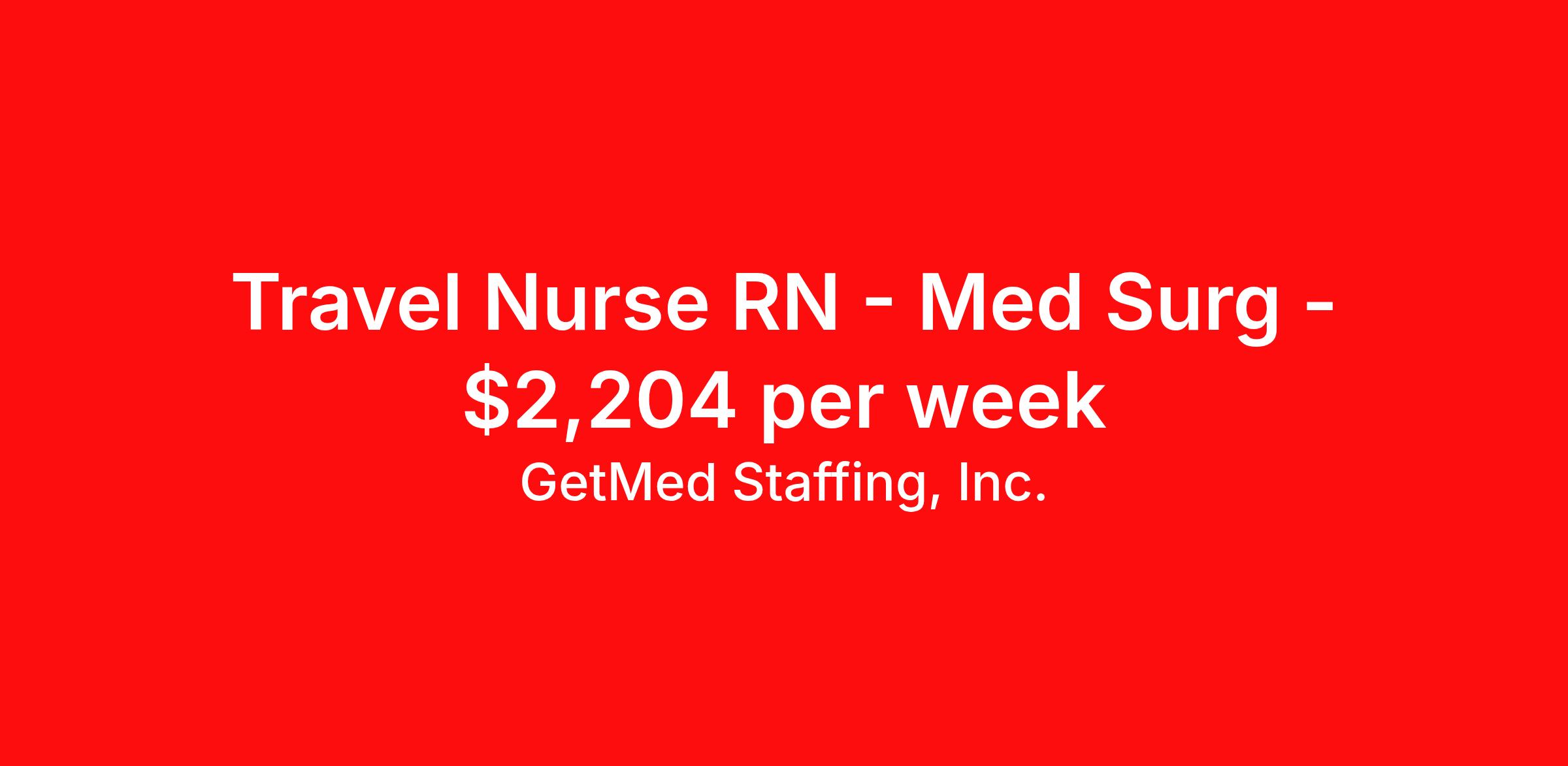 GetMed Staffing, Inc. is seeking a travel nurse RN Med Surg for a travel nursing job in Ithaca, New York. Job Description & Requirements Specialty: Med Surg Discipline: RN Start Date: 03/30/2026 Duration: 13 weeks 40 hours per week Shift: 8 hours, days, evenings, nights, flexible Employment Type: Travel GetMed Staffing is searching for a strong MedSurg RN to assist our traveler-friendly client. A minimum of 1-2 years of experience is required. Traveling with GetMed Staffing offers the unique opportunity to gain diverse experiences, both personally and professionally. Gain experience that matters. GetMed Staffing, Inc. Job ID 36095516. Pay package is based on 8 hour shifts and 40.0 hours per week (subject to confirmation) with tax-free stipend amount to be determined. Posted job title: RN:MedSurg,07:00:00-15:00:00 About GetMed Staffing, Inc. We are a diversity owned company, specializing in healthcare recruiting services. We truly understand how important a healthcare travelers' relationship is with their recruiter, as well as our relationship is with our healthcare facilities. We recognize that the needs of our healthcare travelers can vary, and therefore we provide the personalized touch necessary to ensure a successful travel assignment each and every time. Our healthcare facilities and clients benefit from us putting our healthcare travelers first. GetMed Staffing is excited to be a leader within the industry by focusing on providing healthcare travelers with more choices and possibilities as they plan for their next healthcare travel assignment. Benefits Life insurance Medical benefits Dental benefits Vision benefits 401k retirement plan
