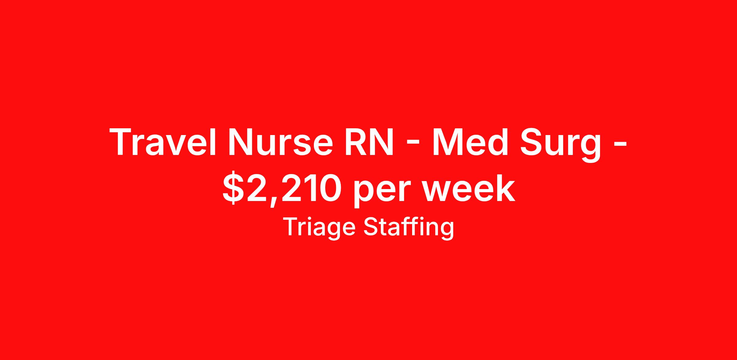 Triage Staffing is seeking a travel nurse RN Med Surg for a travel nursing job in Iron River, Michigan. Job Description & Requirements Specialty: Med Surg Discipline: RN Start Date: 03/30/2026 Duration: 13 weeks 48 hours per week Shift: 12 hours, flexible Employment Type: Travel Travel Nursing: Med/Surg Iron River Location: Iron River Start Date: 3/30/2026 Shift Details: 12H Variable 36 hours per week Length: 13 WEEKS Apply for specific facility details.Med Surg RN Triage Staffing Job ID AYJKFUAW. Posted job title: Nursing: Med/Surg About Triage Staffing At Triage, we prefer to be real . Real about expectations—both ours and yours. Real about how a decision you make today could affect your tomorrows. Real about how compensation actually works. Real about how great—or grating—your next supervisor may be. Being real allows everyone at Triage to be ready . Ready to serve you with real honesty. So if that gig near the ocean is really no day at the beach, or that third shift comes with a second-class rate, we tell you. So you can be ready, too. We staff all five major divisions of acute care—nursing, lab, radiology, cardiopulmonary and rehab therapy, offering: - Competitive, custom pay packages - One point of contact for both travelers and facilities (per division) - A reliable recruiter who's got your back throughout your entire assignment - In-house compliance and accounting specialists - A clinical liaison team available 24/7 to offer medical and professional support and career development - A mentoring program that is run and managed by actual clinicians—yeah, you read that right - And more (because of course there’s more) Are we the biggest? No. Are we the best? That’s rather subjective, but we’re trying to be. Will we work like hell to get you as close to your idea of heaven as possible? Yes. Yes, we will. Benefits: Day One comprehensive, nationwide insurance plans for health, vision and dental and life—including a HSA option Day One 401(k) program with employer-matching contributions once eligible Facility cancelling protection—your time is money on and off-the-clock Guaranteed hours Weekly paychecks via direct deposit Earned vacation bonuses for time worked Paid holidays Employee assistance program (EAP)—your mental health is important, too Continuing education, certification and licensing reimbursement Workers comp—because accidents happen Top-rated professional liability insurance Company provided housing options Referral bonus—$750 in your pocket after they’ve completed a 13-week assignment