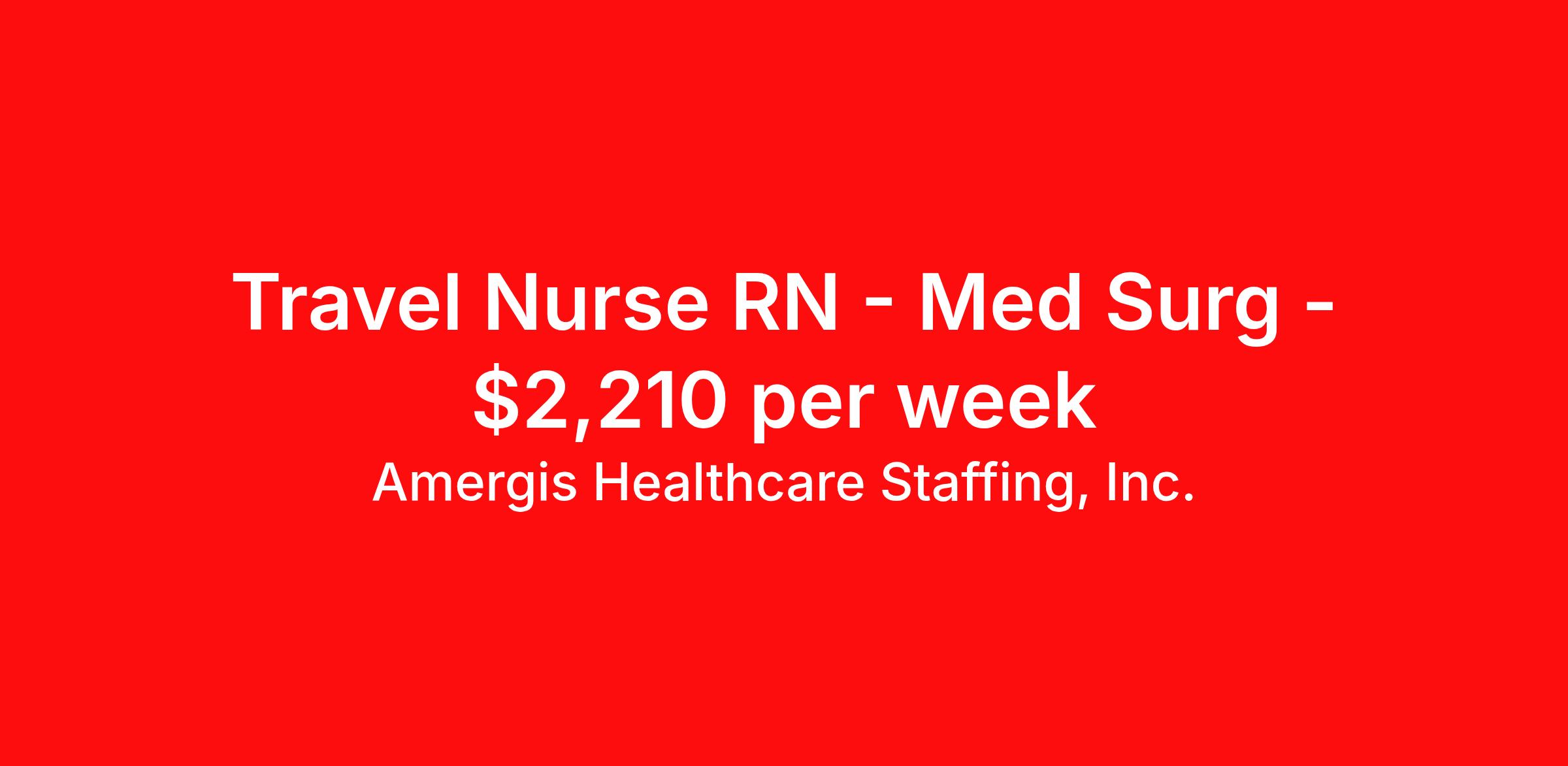 Amergis Healthcare Staffing, Inc. is seeking a travel nurse RN Med Surg for a travel nursing job in Baltimore, Maryland. Job Description & Requirements Specialty: Med Surg Discipline: RN Duration: 16 weeks 36 hours per week Shift: 12 hours Employment Type: Travel "Amergis Healthcare Staffing is seeking a Medical/Surgical Registered Nurse to assume responsibility and accountability for the application of the nursing process and the delivery of patient care. The nurse demonstrates ability to make clinical judgments in an effective and efficient manner with supervision. The nurse demonstrates critical thinking and performance ability in the coordination of patient care. Consistently performs according to nursing standards and is accountable in managing patient care and assisting others in the management of patient care.Responsibilities: Utilizes the nursing process to assess, plan, implement and evaluate patient care. Performs focused interview to identify specific patients needs. Assess signs and symptoms indicating physiologic and psychosocial changes in the patient’s condition. Collects, analyzes, and interprets data and information from health care members and documents actual and/or potential nursing diagnoses. Documents the patient’s plan of care using identified nursing diagnoses, expected patient outcomes, and selected nursing interventions. Identifies and prioritizes actions based upon patient care requirements. Monitors consistency between patient plan of care and actions of medical staff. Performs interventions according to identified priorities, plan of care, and the hospital policies and patient care outcome standard. Provides a safe, comfortable and therapeutic patient environment. Initiates and evaluates patient and/or family education. Revises the plan of care according to evaluation, changes in medical plan of care, and effective/ineffective nursing interventions. Documents patient’s response to nursing and other interventions. Uses clinical judgment in evaluation activities to meet patient care needs of an assigned unit/floor including establishing priorities. Monitors the safety and effectiveness of the environment and equipment. Participates in activities to facilitate good interpersonal communications with the chosen facility. Supports professional practice by observing the following: Uses knowledge and practices in accordance with 1) the Nurse Practice Act; 2) Standards of Nursing Practice; 3) Standards of Patient Care; 4) The Joint Commission, state and local laws; 5) Patient’s Bill of Rights; and 6) Amergis Healthcare Staffing, nursing and client hospital policies. Other duties as assigned. Requirements: Current Registered Nurse License for the state in which the nurse practices. Full command of the English language, both verbal and written. Current Health Certificate (per facility contract or state regulation). Current PPD or Chest X-Ray. One year prior professional nursing experience preferred. Current BLS card. Successful completion of testing process. " Benefits At Amergis, we firmly believe that our employees are the heartbeat of our organization and we are happy to offer the following benefits: Competitive pay & weekly paychecks Health, dental, vision, and life insurance 401(k) savings plan Awards and recognition programs *Benefit eligibility is dependent on employment status. About Amergis Amergis, formerly known as Maxim Healthcare Staffing, has served our clients and communities by connecting people to the work that matters since 1988. We provide meaningful opportunities to our extensive network of healthcare and school-based professionals, ready to work in any hospital, government facility, or school. Through partnership and innovation, Amergis creates unmatched staffing experiences to deliver the best workforce solutions. Amergis is an equal opportunity/affirmative action employer. All qualified applicants will receive consideration for employment without regard to sex, gender identity, sexual orientation, race, color, religion, national origin, disability, protected Veteran status, age, or any other characteristic protected by law. Amergis Job ID 1103567. Pay package is based on 12 hour shifts and 36 hours per week (subject to confirmation) with tax-free stipend amount to be determined. Posted job title: RN Medical-Surgical (Days) About Amergis Healthcare Staffing, Inc. Amergis, formerly known as Maxim Healthcare Staffing, has served our clients and communities by connecting people to the work that matters since 1988. We provide meaningful opportunities to our extensive network of healthcare and school-based professionals, ready to work in any hospital, government facility, or school. Through partnership and innovation, Amergis creates unmatched staffing experiences to deliver the best workforce solutions.