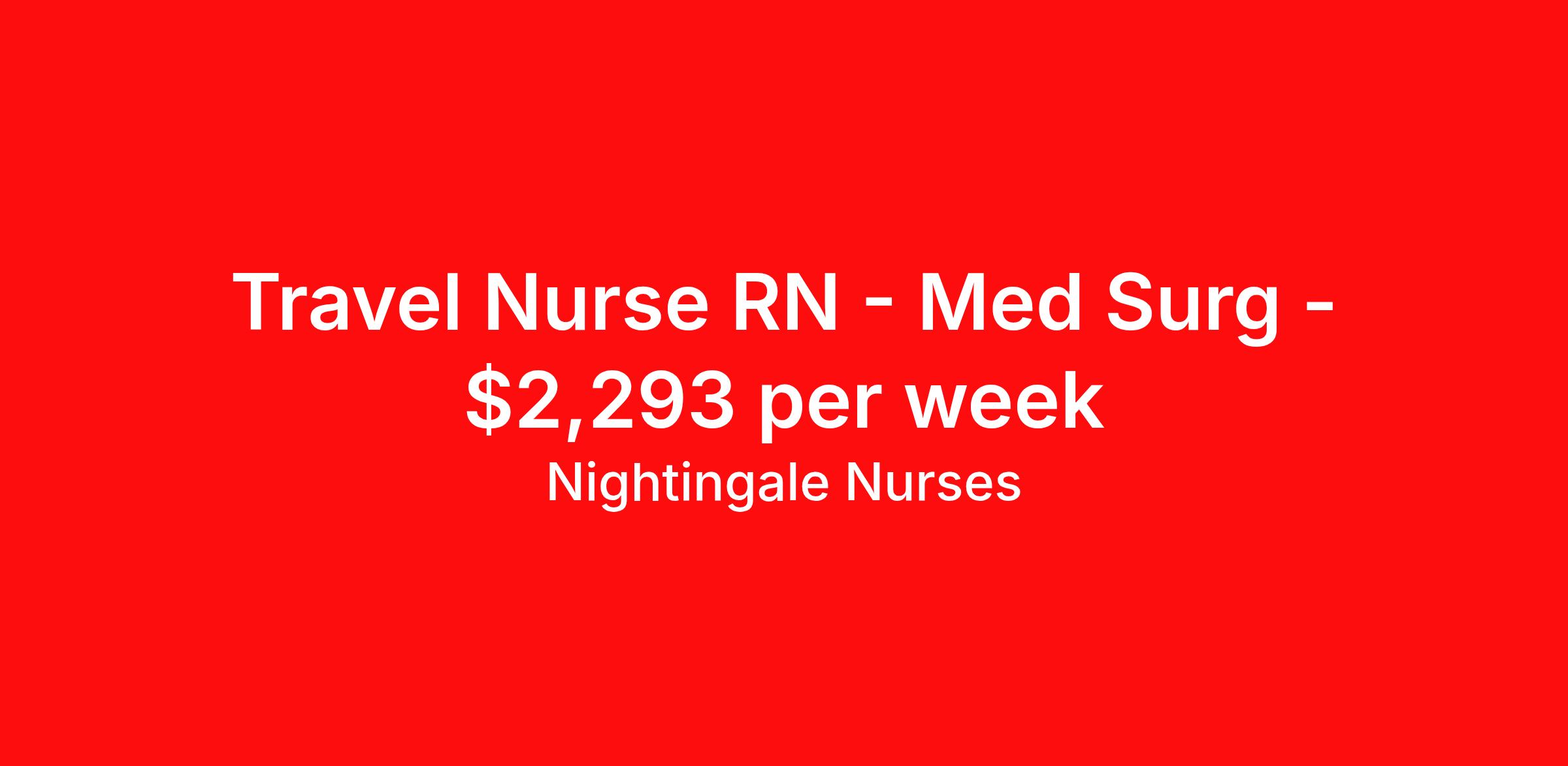 Nightingale Nurses is seeking a travel nurse RN Med Surg for a travel nursing job in Peoria, Illinois. Job Description & Requirements Specialty: Med Surg Discipline: RN Start Date: 04/13/2026 Duration: 13 weeks 36 hours per week Shift: 12 hours, nights Employment Type: Travel About Nightingale Nurses the first name in travel nursing You may not realize it, but as an RN with real world hospital experience, you are legendary. To the lives you’ve helped save, the patients you’ve cared for, and to the hospitals where you’ve done it. And you’re just getting started. Legendary is where Nightingale begins. We’re the first name in travel nursing, representing only the very best RNs. That’s why hospitals prefer us, allowing us to offer exceptional travel nursing assignments all over the US, as well as the highest pay rates and most extensive benefits in the industry. Nightingale facilitates every aspect of your travel nursing assignment, so you can focus on doing what you do best. We want you to grow, explore, and enjoy unrivaled liberty, the freedom to nurse.