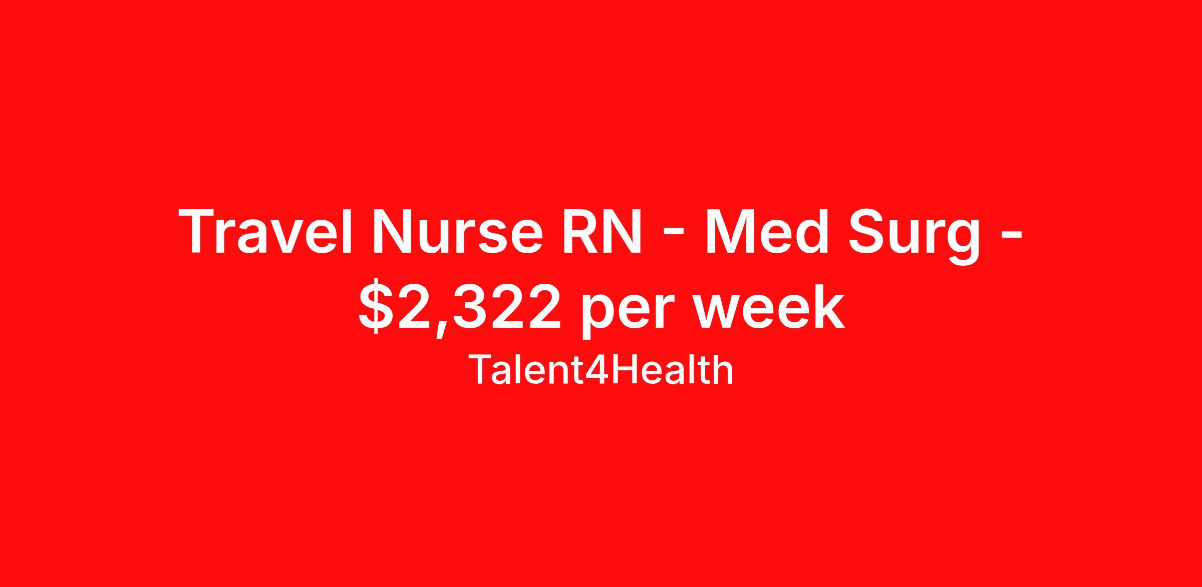 Talent4Health is seeking a travel nurse RN Med Surg for a travel nursing job in Brooklyn, New York. Job Description & Requirements Specialty: Med Surg Discipline: RN Start Date: 04/06/2026 Duration: 13 weeks 34.5 hours per week Shift: 12 hours, days Employment Type: Travel Urgent Requirement/Quick Offer Med/Surg. RN – Days or Nights ; EOW Open to Pay Negotiation 2 yr. experience required. First-time travellers accepted New York License Open to Pay Negotiation Quick Offer Available! 2 yrs exp. Benefits – Neeraj About Talent4Health A leader and innovator, offering comprehensive talent solutions for the healthcare industry across the nation. Talent4Health, based in Wilmington, DE is a one stop solution that offers access to an inclusive network of excellent healthcare professionals through its state-of-the-art recruitment strategies and extensive career opportunities. We have successfully placed over 3000 plus clinicians with the topmost healthcare facilities across 50 states in the US. With countless prestigious clients under our umbrella, backed up by passionate and hard-working recruiters, we are a team you have been looking for! Why Choose us? When it comes to choosing a recruitment agency, it’s imperative to consider what all they have to offer. Proficiency : Our seasoned team of professionals has years of experience and we are dedicated to provide the highest quality service to our clients and candidates. Personalized service : We understand that every candidate is unique, and we work closely with each one to develop a customized plan that meets their specific needs. Consistency : We are devoted to offer dependable recruitment solutions for our candidates, and we are always a phone call away for all their questions or concerns. Comprehensive care : Our healthcare recruitment team works for different specialties, so there is a job for everyone. If this is all that excites you, do visit http://www.talent4health.com today!