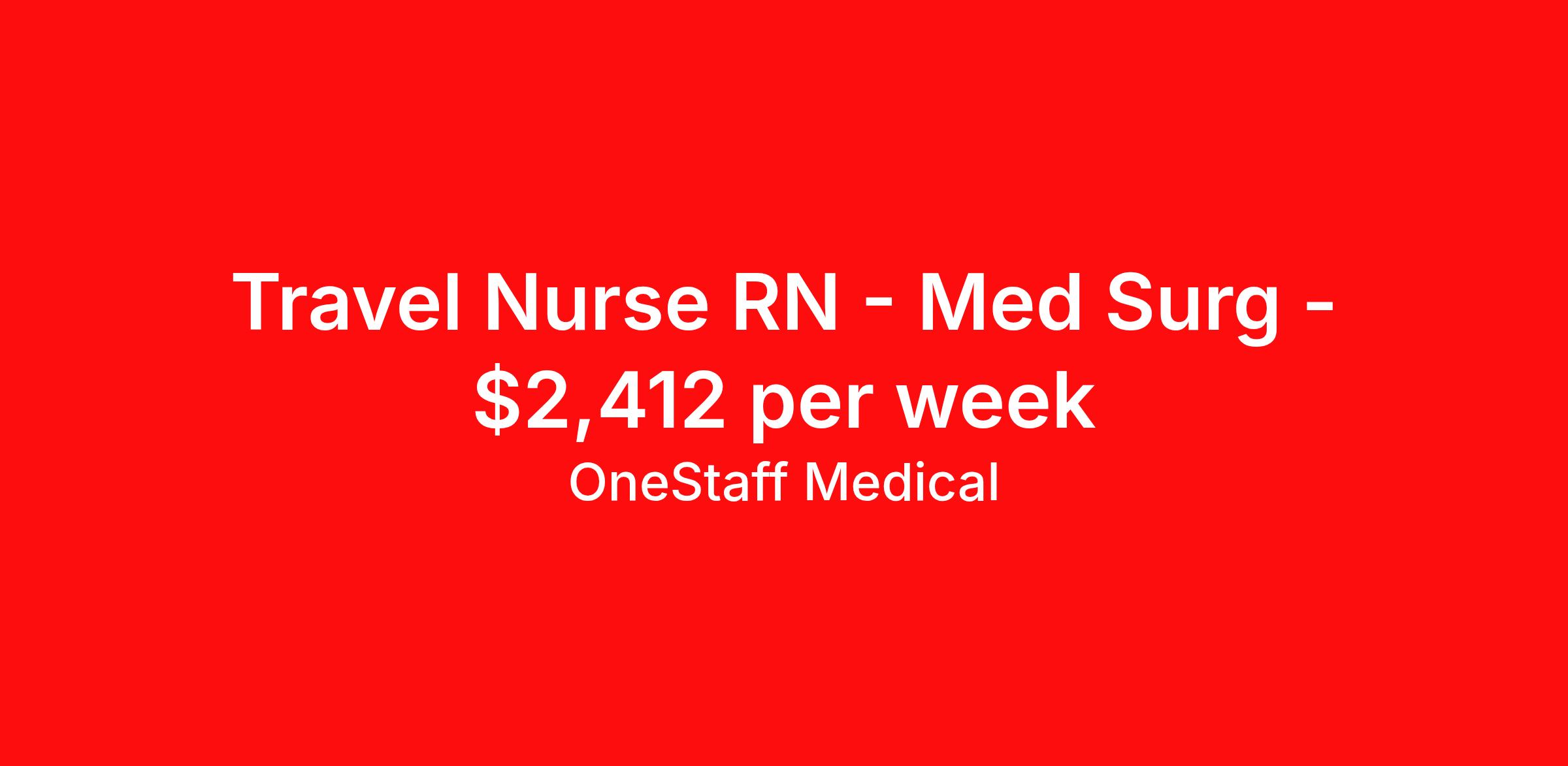 OneStaff Medical is seeking a travel nurse RN Med Surg for a travel nursing job in Houlton, Maine. Job Description & Requirements Specialty: Med Surg Discipline: RN Start Date: ASAP Duration: 13 weeks 36 hours per week Shift: 12 hours, nights Employment Type: Travel 100 mile radius About OneStaff Medical You deserve a partner that is working for you. Be bold and let us do just that. We’ll take care of you while you are away from your own “home base” in every way we can, and ideally do more than you expect. Your team at OneStaff is dedicated to finding the perfect assignments (for you), negotiate the best rates and handles any issues that may arise while you are on assignment. We take great pride in building relationships with our traveling professionals and we enjoy hearing about your experiences. Whatever the need, we are here to help along the journey. We understand you are the heart and soul of what we are. Whether it is housing, payroll, travel, benefits, or just a friendly voice to talk to, we are there every step of the way. The company you choose is the most important decision you will make in your traveling career. We get that, so we’re committed to you 24 hours-a-day, 7 days-a-week. We’re your “one” solution in travel assignments and here to assist whether helping with accelerating your trajectory towards your career goals or meeting your travel requirements. Benefits Weekly pay Holiday Pay Guaranteed Hours 401k retirement plan Pet insurance Company provided housing options Sick pay Wellness and fitness programs Referral bonus Medical benefits Dental benefits Vision benefits