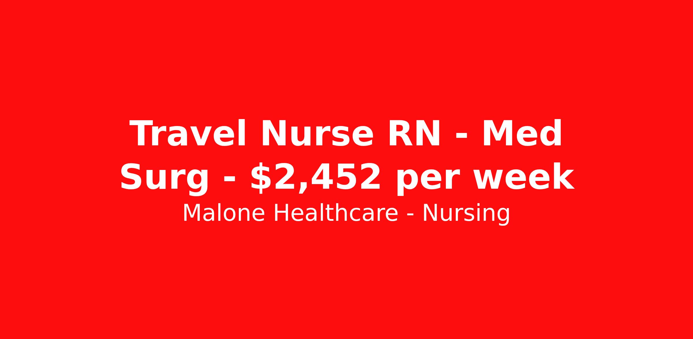 Malone Healthcare - Nursing is seeking a travel nurse RN Med Surg for a travel nursing job in Rock Island, Illinois. Job Description & Requirements Specialty: Med Surg Discipline: RN Start Date: 04/20/2026 Duration: 13 weeks 36 hours per week Shift: 12 hours, days Employment Type: Travel About Malone Healthcare - Nursing With a commitment to providing a higher standard of service and experience in patient care, Malone Healthcare places expert nurses and allied health professionals in rewarding careers throughout the United States. As a leading healthcare staffing agency, Malone’s focus on compliance and integrity translates to a seamless experience for our team members and partner facilities. When you work with Malone Healthcare, you can rely on over 50 years of proven experience placing exceptional professionals in quality healthcare settings. Benefits Weekly pay Holiday Pay Guaranteed Hours Continuing Education 401k retirement plan Pet insurance Referral bonus Medical benefits Dental benefits Vision benefits License and certification reimbursement Life insurance