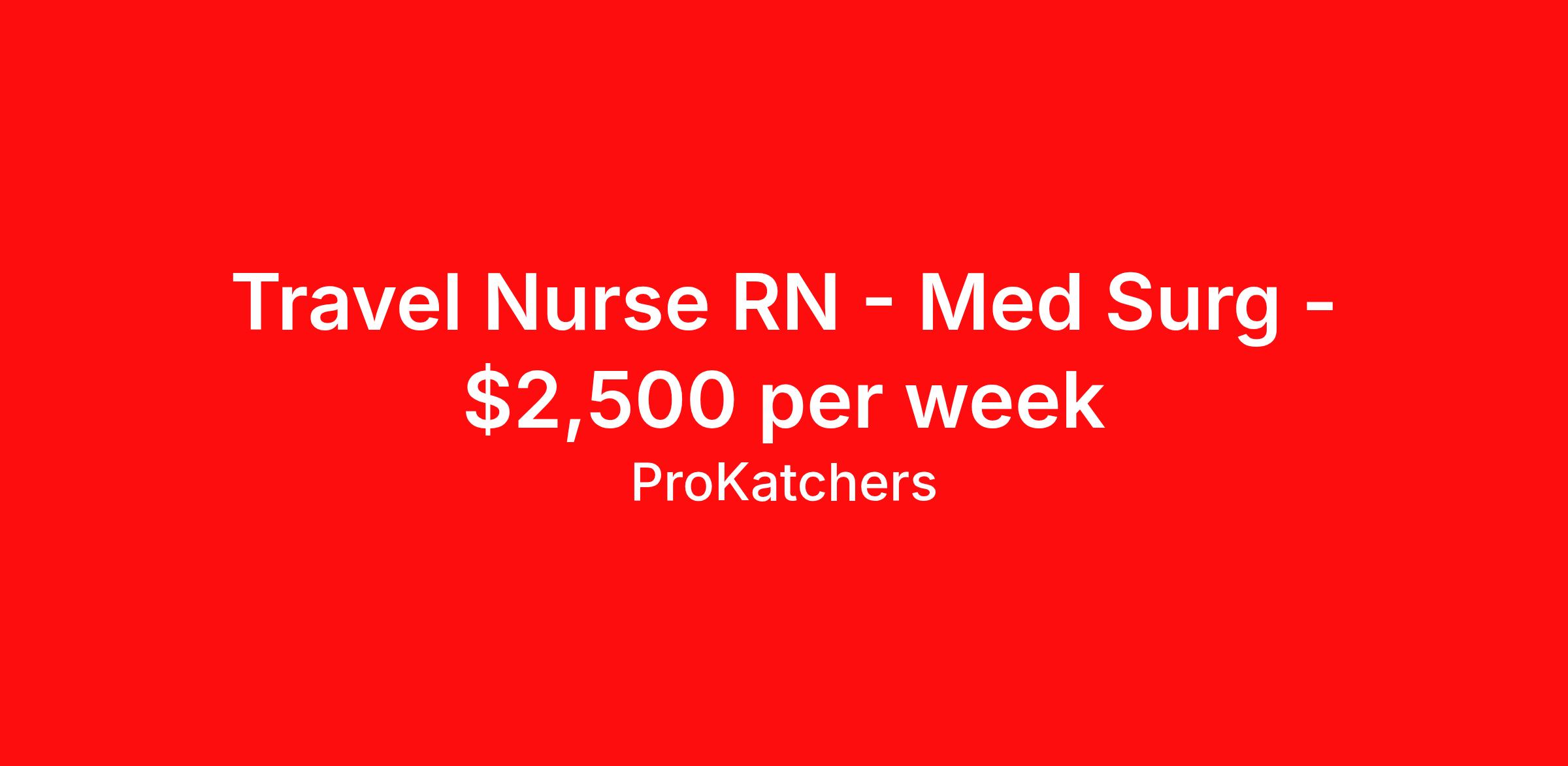 ProKatchers is seeking a travel nurse RN Med Surg for a travel nursing job in Fort Defiance, Arizona. Job Description & Requirements Specialty: Med Surg Discipline: RN Start Date: 03/23/2026 Duration: 13 weeks 36 hours per week Shift: 12 hours, nights Employment Type: Travel Duties: Under general supervision, provides nursing care in a hospital to a variety of patients with health problems ranging from simple to complex. Responsibilities listed in this section are core to the position. Inability to perform these responsibilities with or without an accommodation may result in disqualification from the position. Assumes responsibility for an assigned group of patients. Documents patient responses to nursing interventions and prescribed medical treatments; notes all changes in physician order on assigned patients. License, Certification, Registration: 2 years of experience in Med-Surg unit Registered Nurse License (in the state where care is provided) BLS/ACLS (AHA) ProKatchers Job ID 294627. Pay package is based on 12 hour shifts and 36 hours per week (subject to confirmation) with tax-free stipend amount to be determined. Posted job title: RN - Med Surg About ProKatchers Founded in 2016, ProKatchers Inc. is a JCC-certified organization and a recognized leader in healthcare staffing. Named one of the Fastest Growing Healthcare Staffing Firms by Staffing Industry Analysts (SIA) for 2023–2024, we are proud to be among the top-rated companies in our industry. At ProKatchers, we offer both short- and long-term contracts, as well as travel opportunities for licensed and experienced healthcare professionals across the United States. We are committed to providing industry-leading benefits and personalized career support. We understand that finding the right fit is about more than just a job—it’s about aligning your career with your lifestyle. That’s why our dedicated team of career specialists takes the time to get to know you and match you with assignments that meet your goals and aspirations. ProKatchers has also been recognized by SIA as one of the Best Staffing Firms to Work For—a testament to our employee-first approach. We specialize in placing clinical and allied health professionals in a wide range of healthcare settings, including acute care hospitals, skilled nursing facilities, long-term care centres, rehabilitation facilities, behavioural health canters, home and community health programs, urgent care clinics, and more.