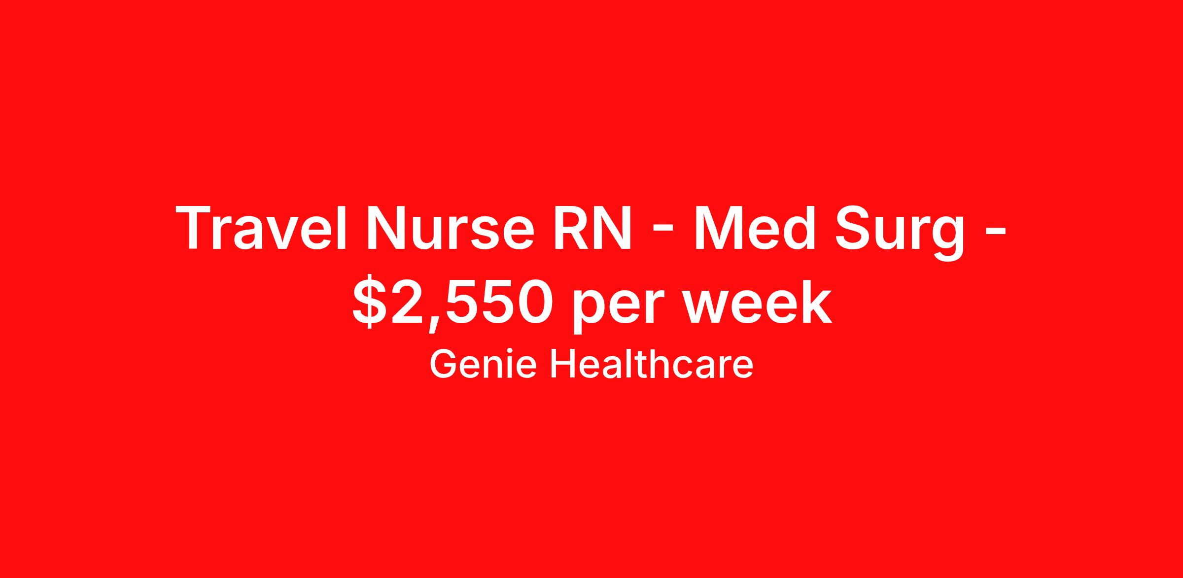 Genie Healthcare is seeking a travel nurse RN Med Surg for a travel nursing job in Peoria, Illinois. Job Description & Requirements Specialty: Med Surg Discipline: RN Start Date: 04/06/2026 Duration: 13 weeks 36 hours per week Shift: 12 hours, nights Employment Type: Travel Required Skills & Experience: -Minimum three (3) years of relevant nursing experience. Required Education: -ASN Required Certifications & Licensure: -Illinois state RN License in good standing -BLS (American Heart Assoc.) Job Description: -The staff Registered Nurse (RN) is a professional caregiver who assumes responsibility for a group of patients for a designated time frame and provides care to these patients via the utilization of the nursing process, nursing trends, technology, financial and human resources within the philosophy of the institution. About Genie Healthcare Genie Healthcare is one of the fastest growing Nurse Travel Agencies in the USA. Genie serves hundreds of facilities and has over 4000 current travel RN contracts open at any given time. Genie provides travel RN’s flexibility, support, top pay scale, housing and the 1 rated, multi-state health insurance coverage. Genie Healthcare carries with it a commitment to providing a comprehensive level of service and quality care. Growing from a small team of eager recruiters to a company with satisfied clients in nearly every corner of the nation, delivering excellence in patient and customer care is the key to Genie’s success. The management team has 20 years of experience in workforce solutions and staffing in medical and non-medical fields, roles ranging from Clerical job to Cardiologist to software developer to CEO.