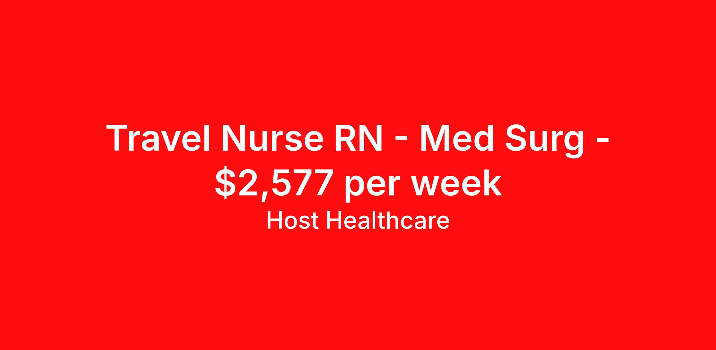 Host Healthcare is seeking a travel nurse RN Med Surg for a travel nursing job in Albany, Georgia. Job Description & Requirements Specialty: Med Surg Discipline: RN Start Date: 04/13/2026 Duration: 17 weeks 48 hours per week Shift: 12 hours, days Employment Type: Travel Host Healthcare Job ID a1fVX000002zS1RYAU. Pay package is based on 12 hour shifts and 48 hours per week (subject to confirmation) with tax-free stipend amount to be determined. Posted job title: RN - Medical-Surgical About Host Healthcare At Host Healthcare, we provide a truly comfortable experience as you explore your travel nursing, therapy, or allied career. We make your travel healthcare journey easy by taking care of all the details, so you don’t have to. We are on a mission to help others live better and we do this by helping the healers of the world be as comfortable as possible. With access to tens of thousands of travel nursing, therapy, and allied jobs in all 50 states, our responsive and friendly recruiters find your dream position based on what’s important to you. During your assignment, get access to premium benefits, including Day 1 medical that continues up to 30 days between assignments, 401K matching, travel reimbursements, dedicated housing support, and more. We also offer 24/7 support from our team and access to our on-staff clinicians so you can feel comfortable and confident throughout your entire assignment. Travel comfortably with Host Healthcare. Benefits Referral bonus School loan reimbursement Vision benefits Wellness and fitness programs Company provided housing options License and certification reimbursement Life insurance Medical benefits Mileage reimbursement Pet insurance Discount program Employee assistance programs Guaranteed Hours Health savings account Holiday Pay 401k retirement plan Continuing Education Dental benefits