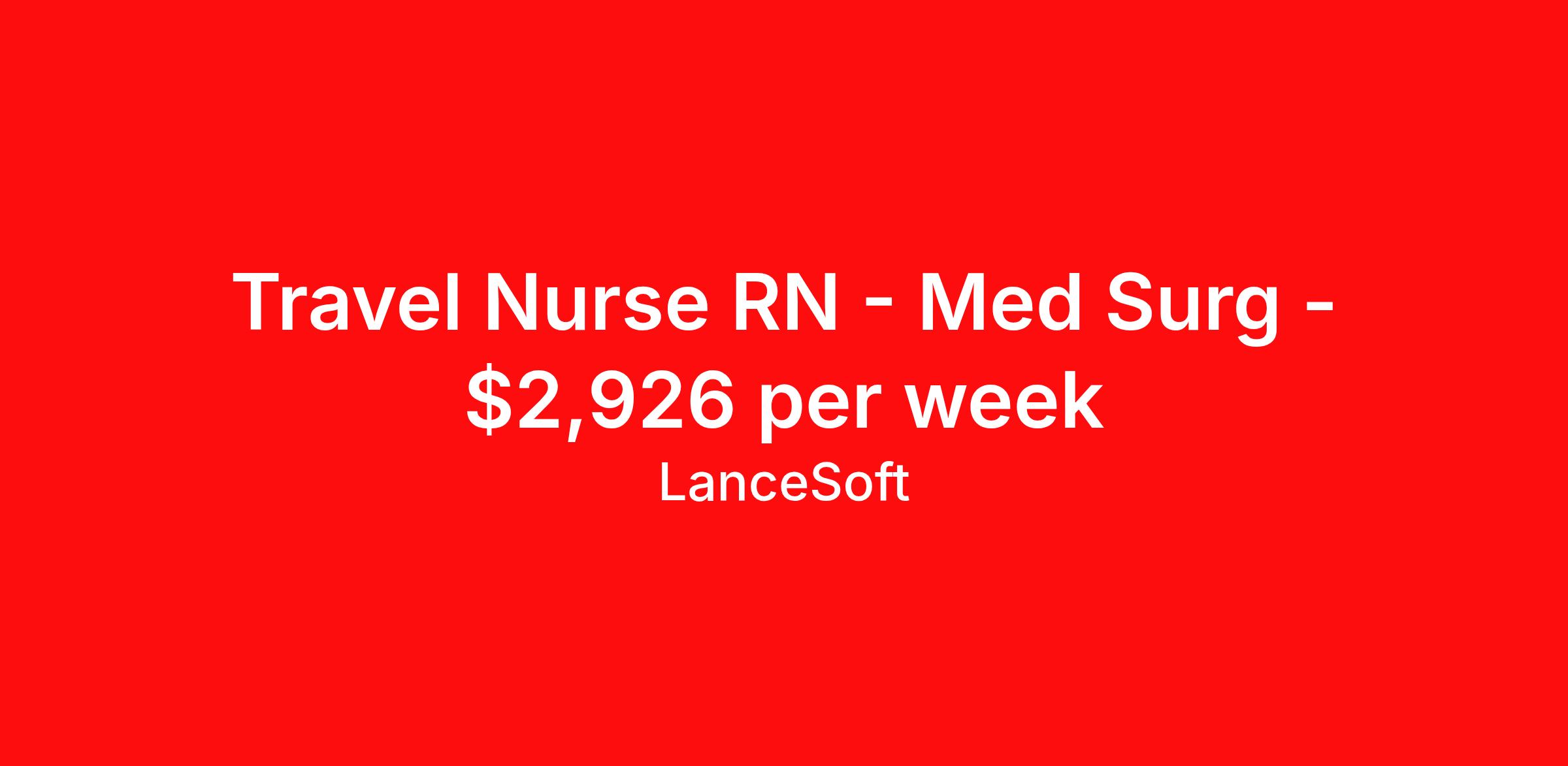 Travel Nurse RN - Med Surg - $2,926 per week