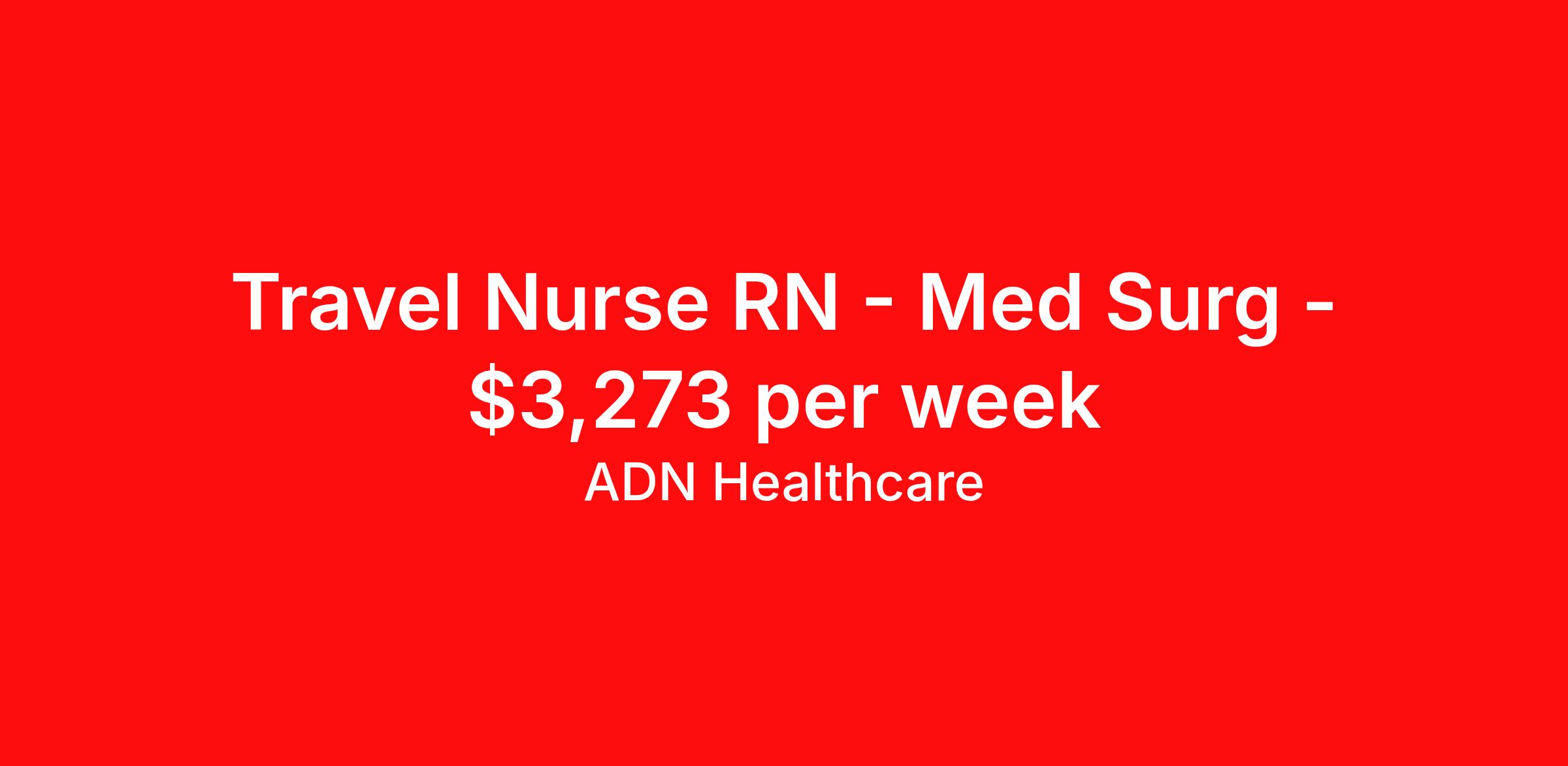 ADN Healthcare is seeking a travel nurse RN Med Surg for a travel nursing job in Marshfield, Wisconsin. Job Description & Requirements Specialty: Med Surg Discipline: RN Start Date: 03/29/2026 Duration: 13 weeks 48 hours per week Shift: 12 hours, nights Employment Type: Travel Our Client is currently seeking Med Surg for positions in Marshfield, Wisconsin The ideal candidate will possess a current Wisconsin license. This is a RN position in the 301351176 - Med Surg/PCU/Tele RN - 5N Neuro Trauma type:Telemetry. You must have a Nursing License and at least 2 years of recent experience as a RN – Med Surg. Requirements • Current Resume • Nursing License per state • Current BLS and/or ACLS and/or Specialty Certifications • 2 current clinical references • Competitive pay rates • Health/Dental Benefit package • License reimbursement • Refer a friend and earn extra cash! ADN Healthcare Job ID 35597549. Pay package is based on 12 hour shifts and 48.0 hours per week (subject to confirmation) with tax-free stipend amount to be determined. Posted job title: RN:Med Surg,19:00:00-07:00:00 About ADN Healthcare ADN Healthcare has thousands of contract and direct hire positions available. We offer medical, dental, and vision coverage. Benefits Guaranteed Hours Continuing Education Company provided housing options Mileage reimbursement Referral bonus Medical benefits Dental benefits Vision benefits License and certification reimbursement Weekly pay Life insurance Health Care FSA